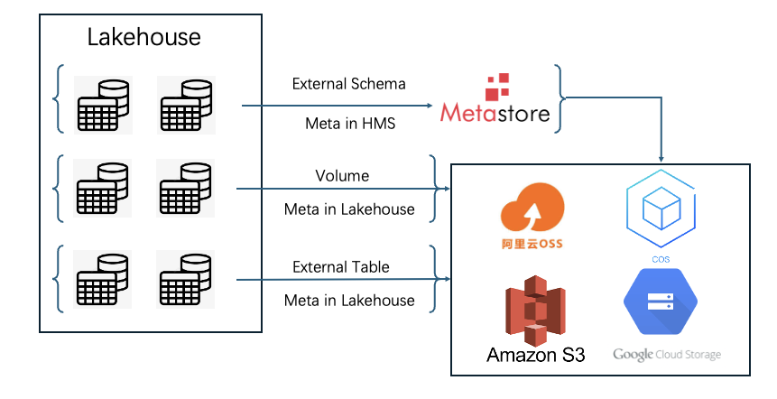 - External Schema : Data lake file + Meta library Lakehouse embedding scheme (Parquet File on DataLake + HMS)