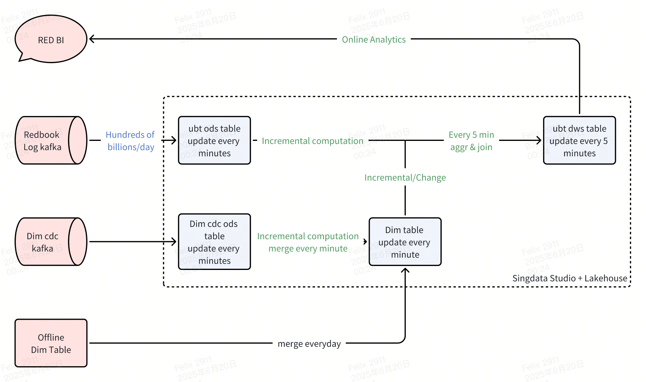 | Comparison Dimension | Singdata x Rednote Incremental Solution | Rednote Current Real-time Pipeline |