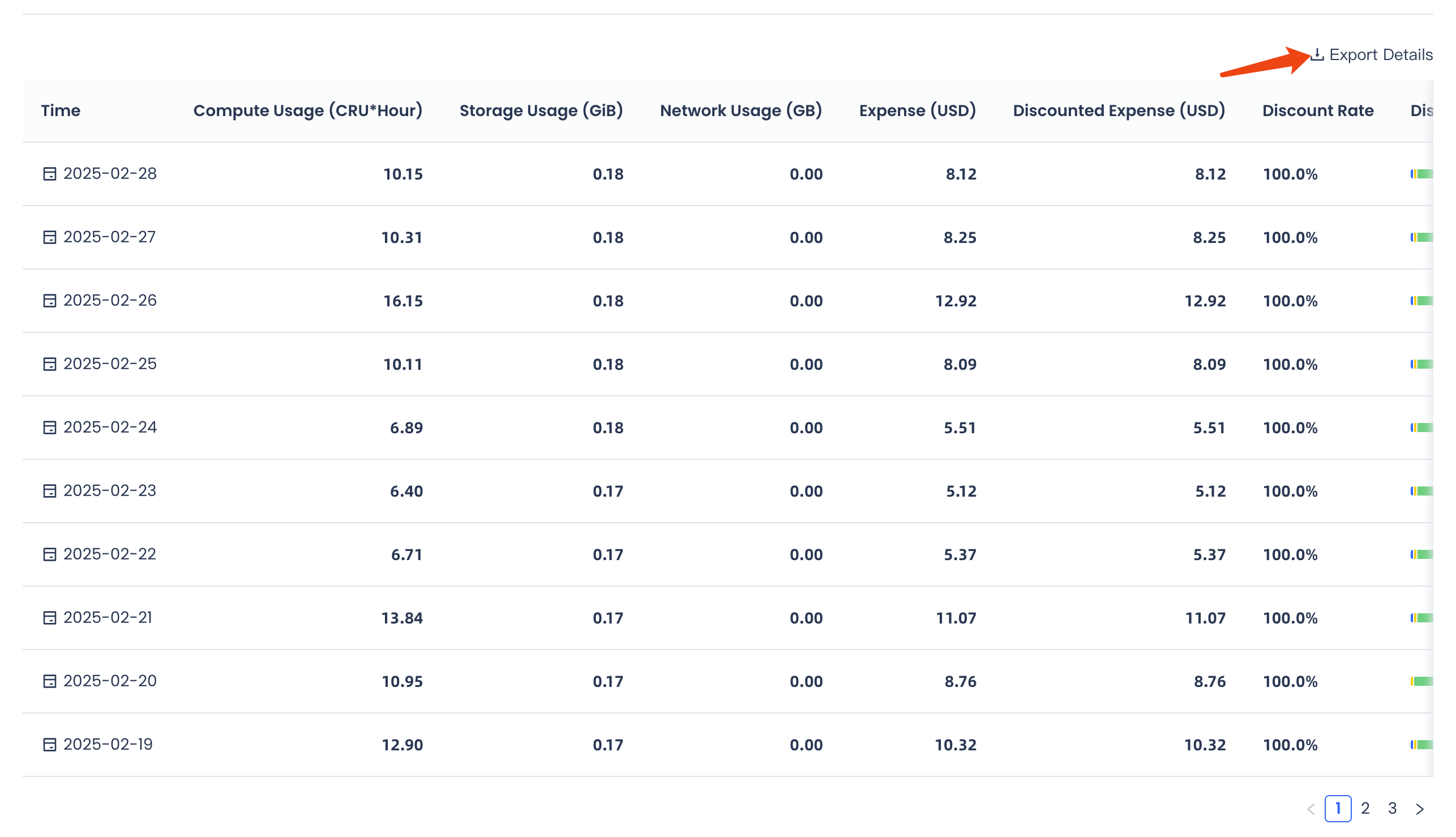 Bill Details show daily billing information, including resource original prices, discounts, and more. Detailed data can be exported.
