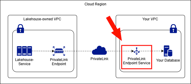 When Lakehouse needs to access services hosted inside your AWS VPC (such as a self-managed MySQL database or Hive Metastore), you must first create an AWS VPC Endpoint Service and configure the target service as a backend resource of that endpoint service.