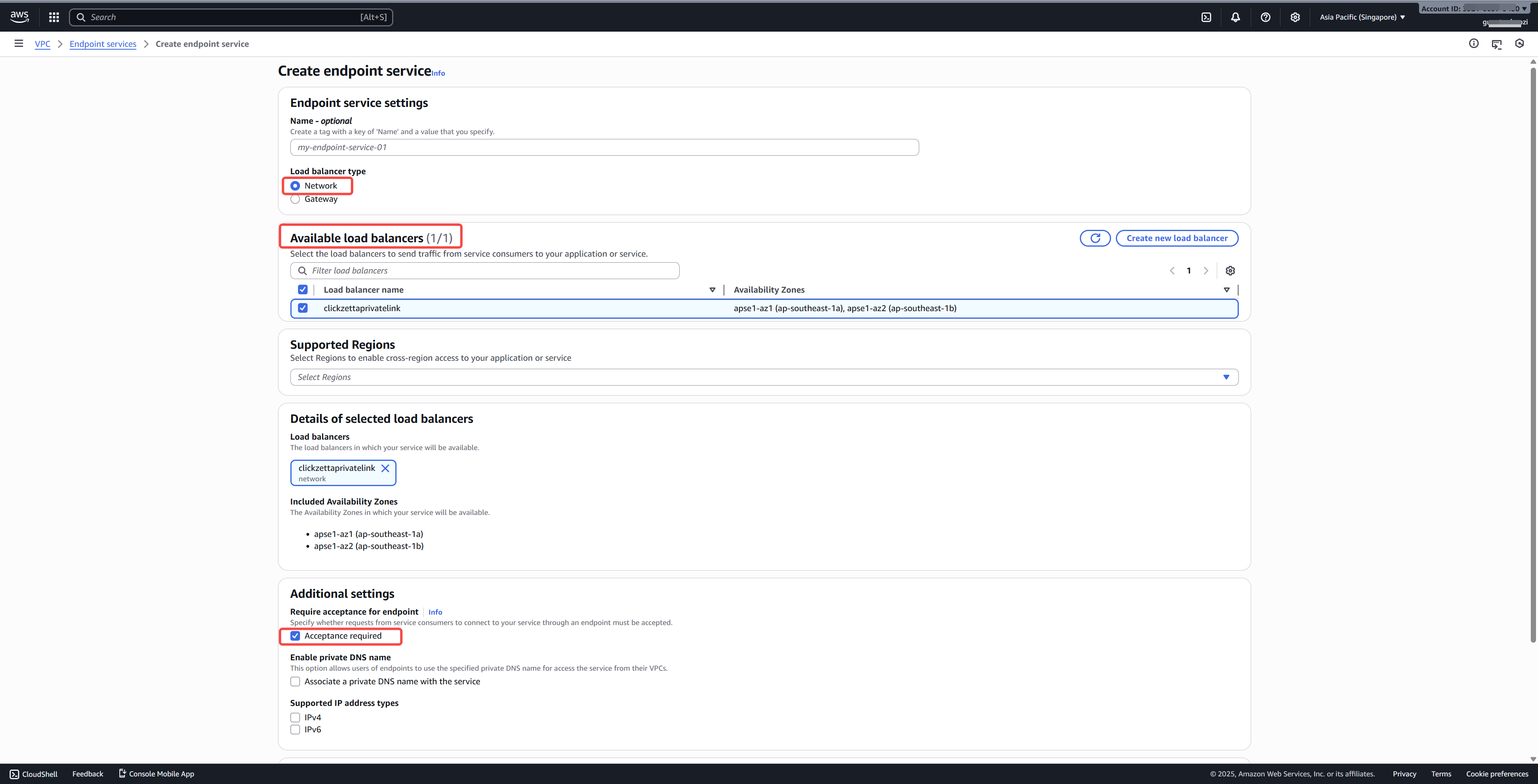 1. Create an Endpoint Service in AWS