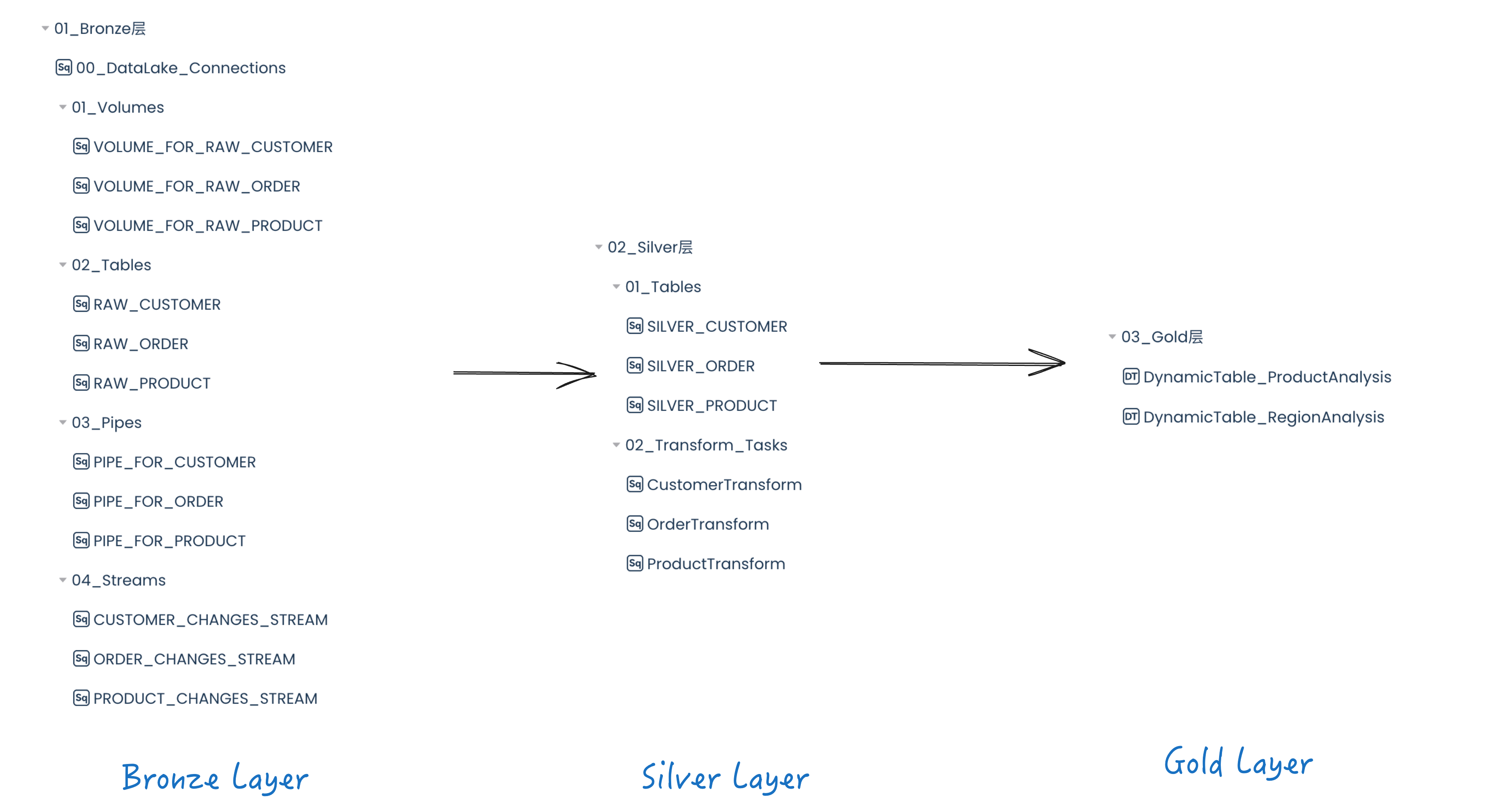 In modern data lakehouse architecture, the three-layer data warehouse (3 Layer Data Warehouse) is typically divided into Bronze, Silver, and Gold layers. This architecture provides a systematic approach to managing data at different stages, from raw data to high-quality data.