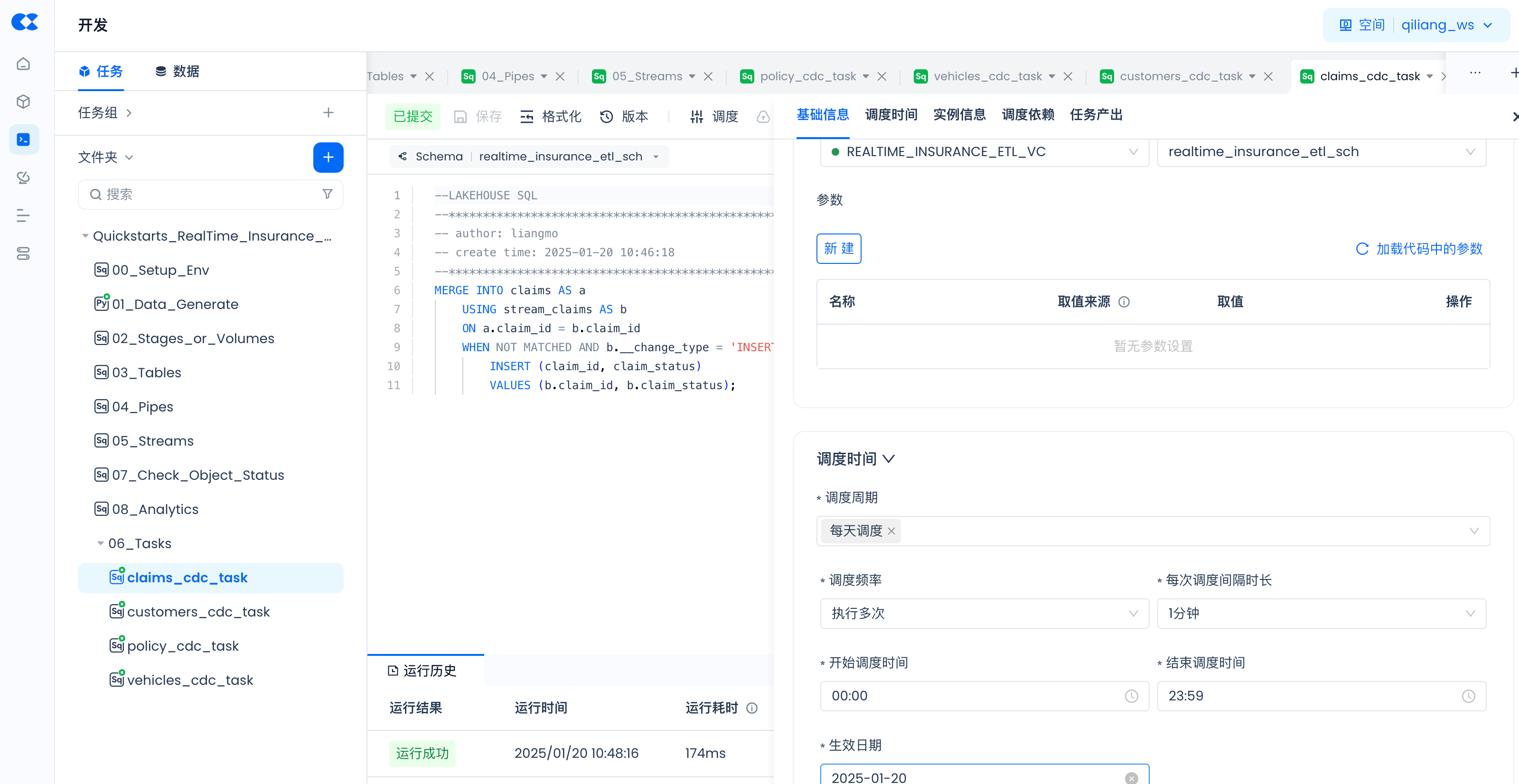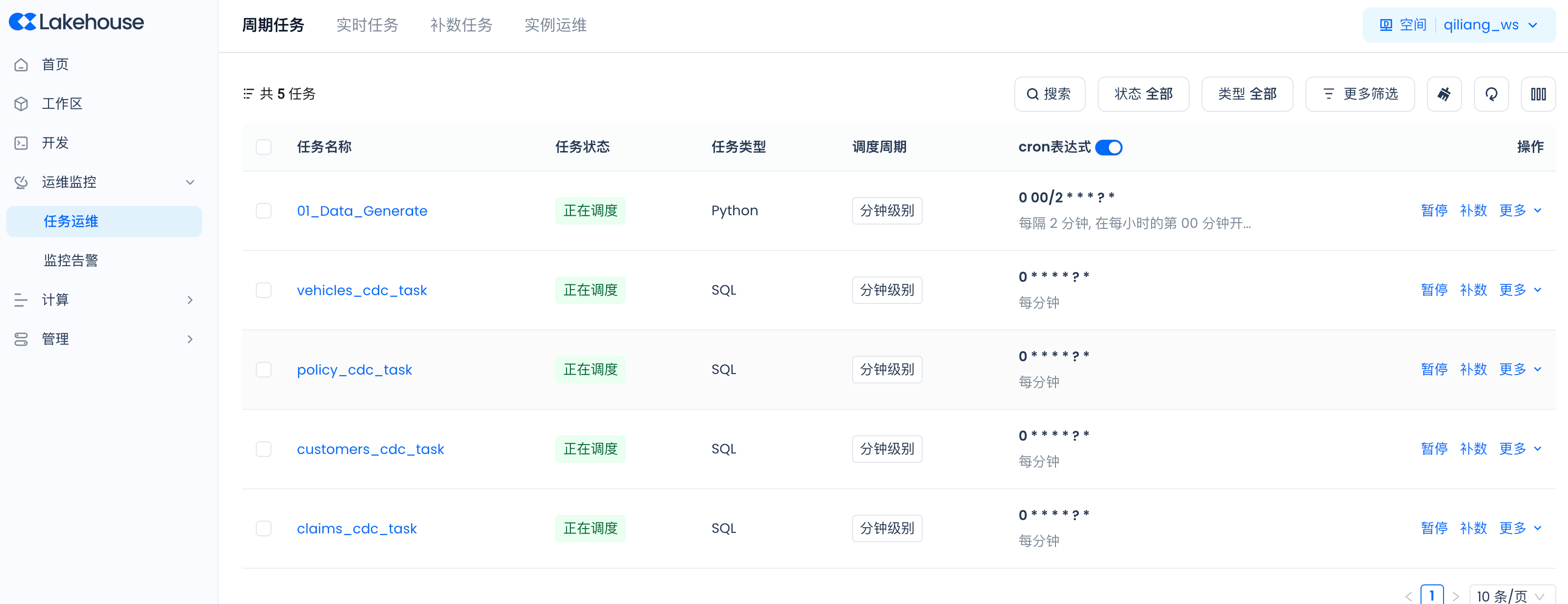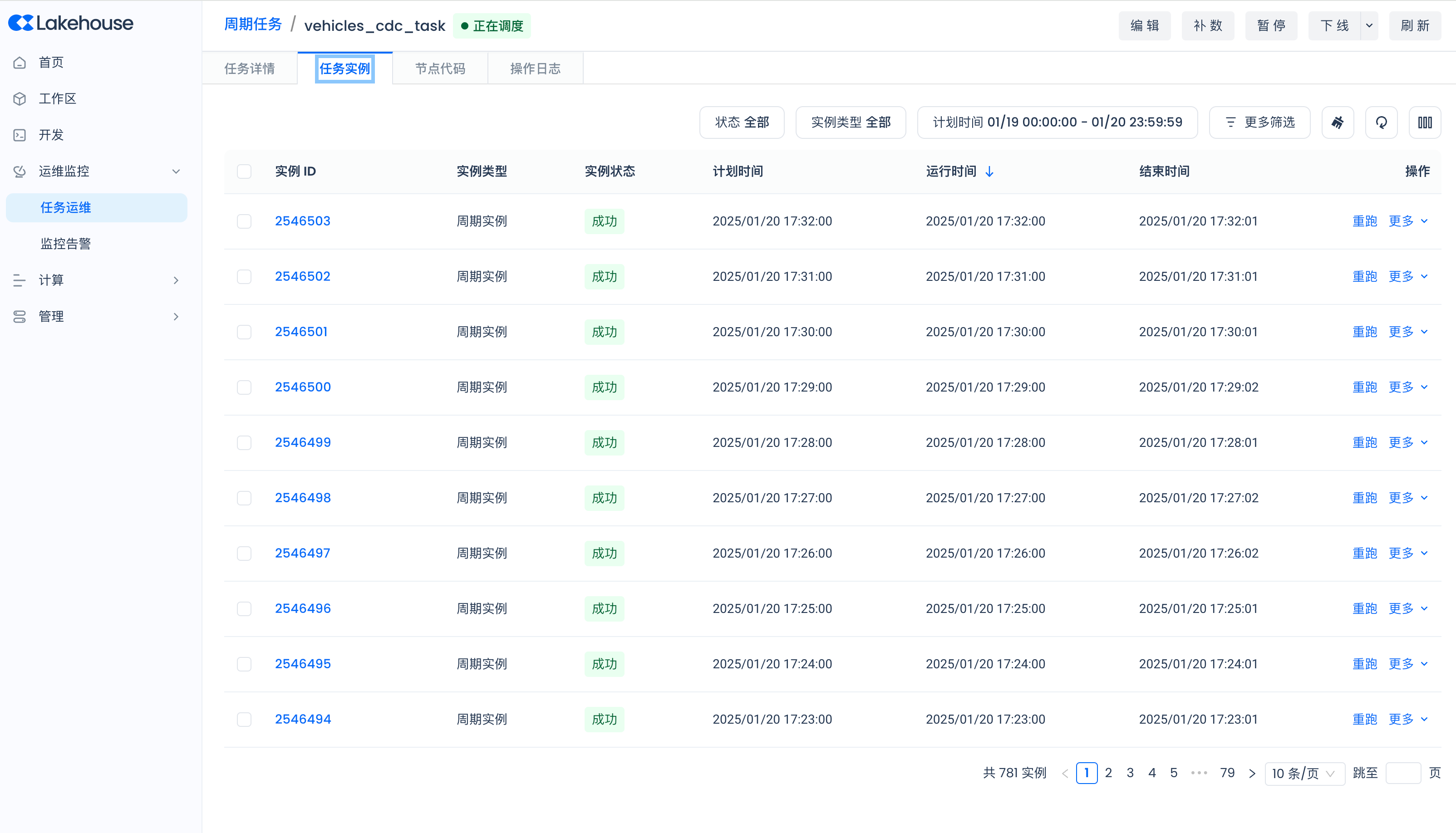 Navigate to Lakehouse Studio Operations Monitoring -> Task Maintenance -> Periodic Tasks, to view the running status of each periodic scheduling task: