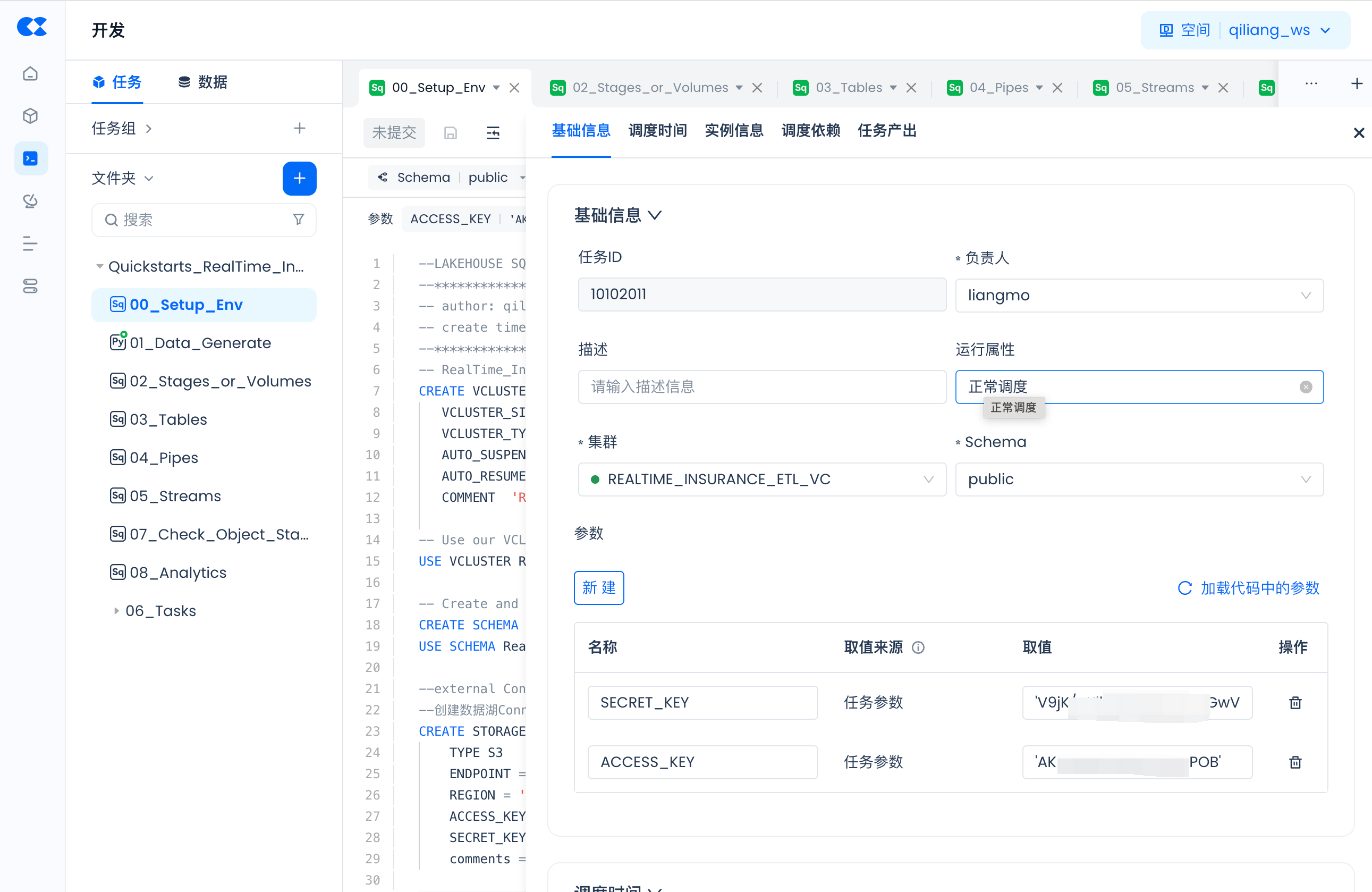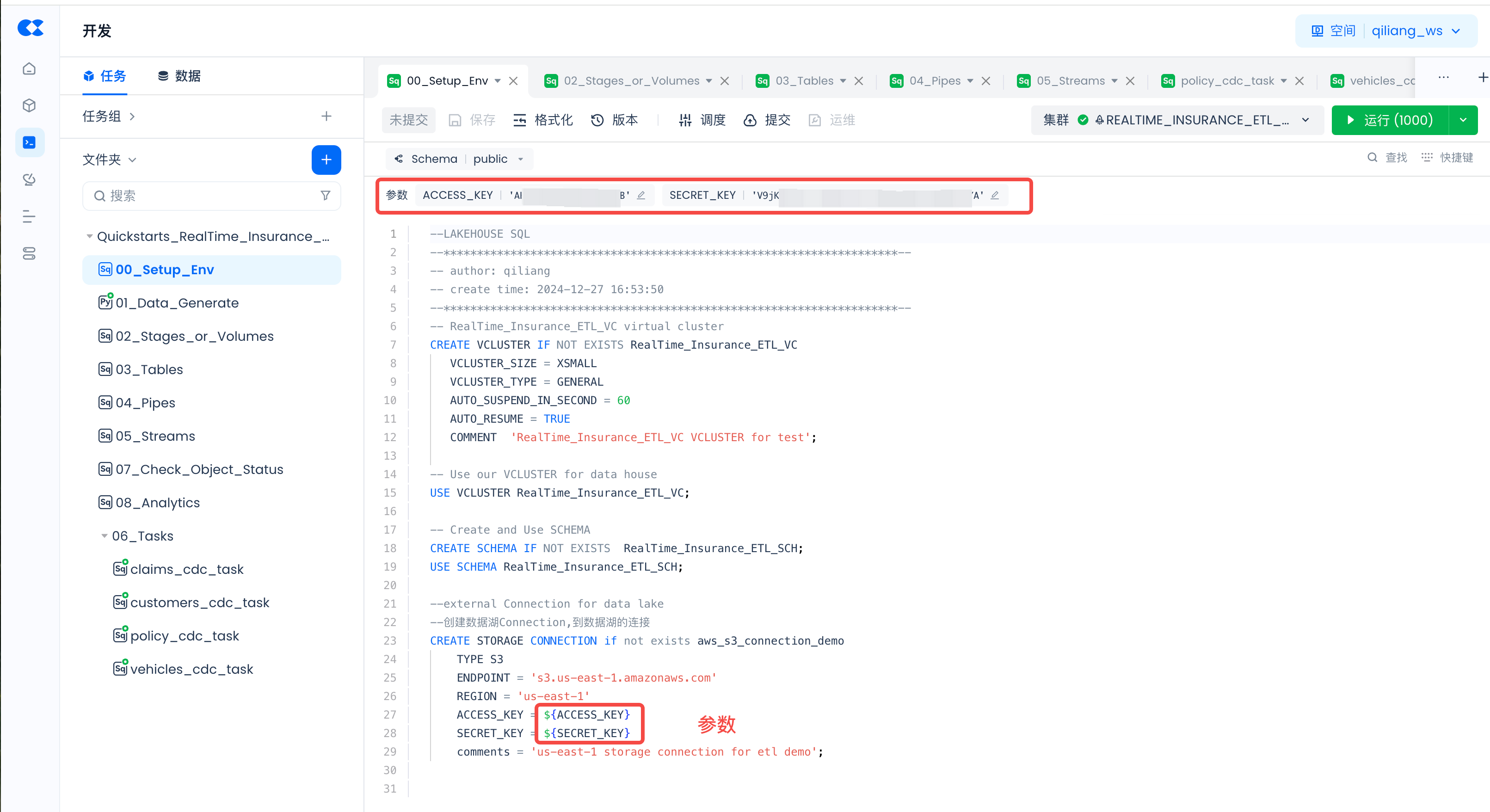 For tasks (00_Setup_Env and 01_Data_Generate), there are parameters, for example: