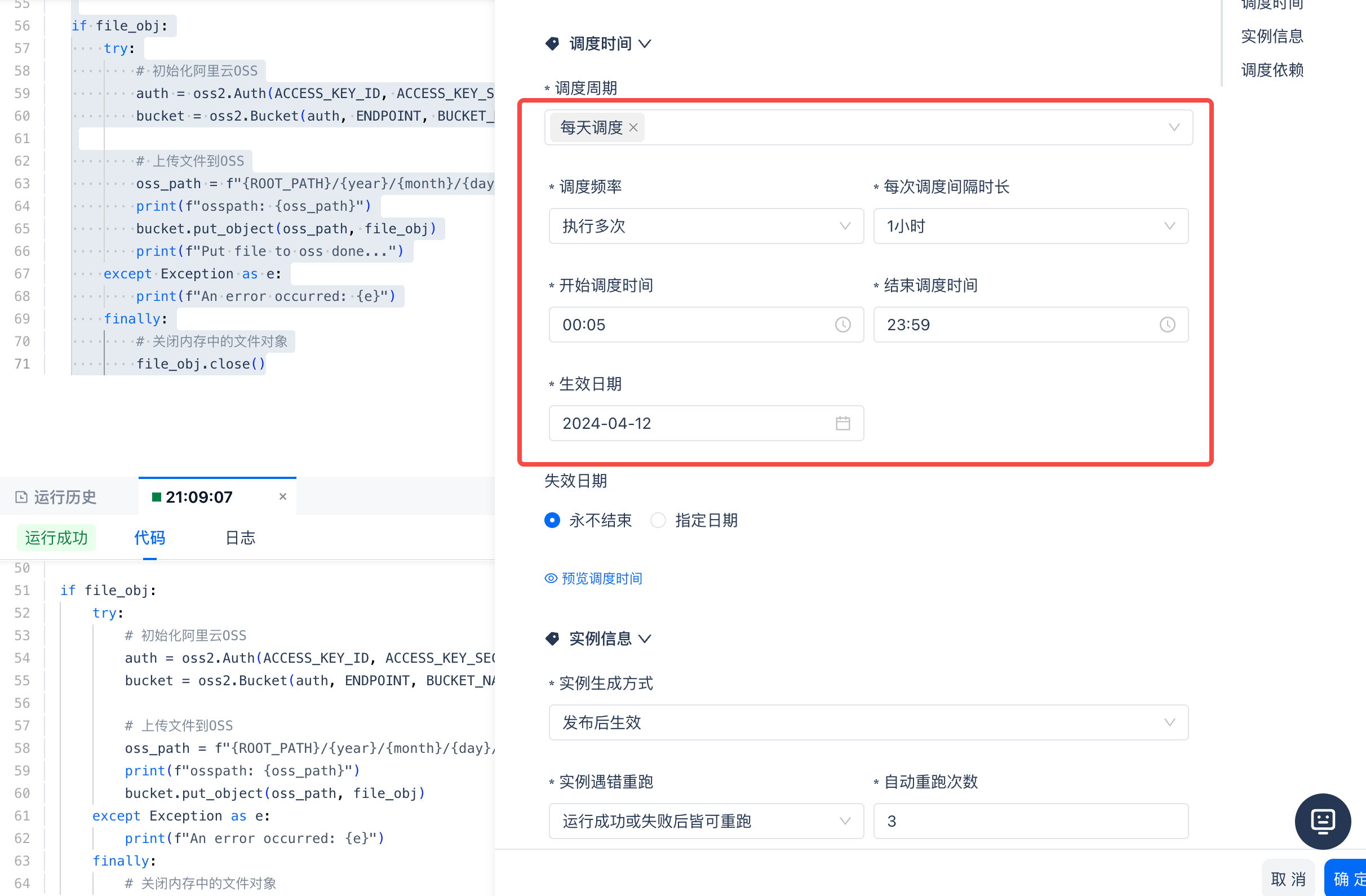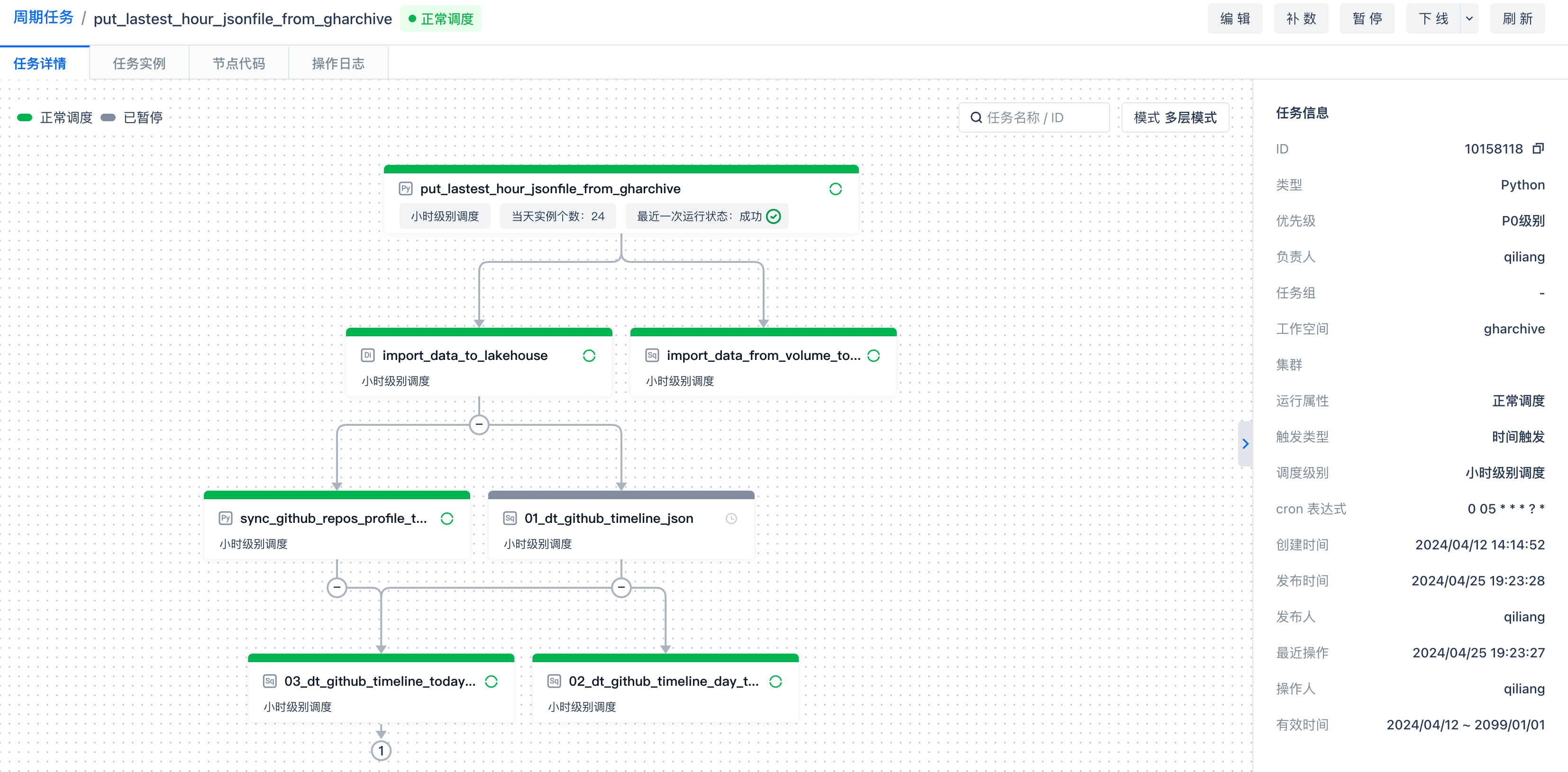 Then click "Submit" to complete the publishing. This way, the Python task can periodically schedule and complete the data synchronization of gharchive files to the cloud object storage OSS.