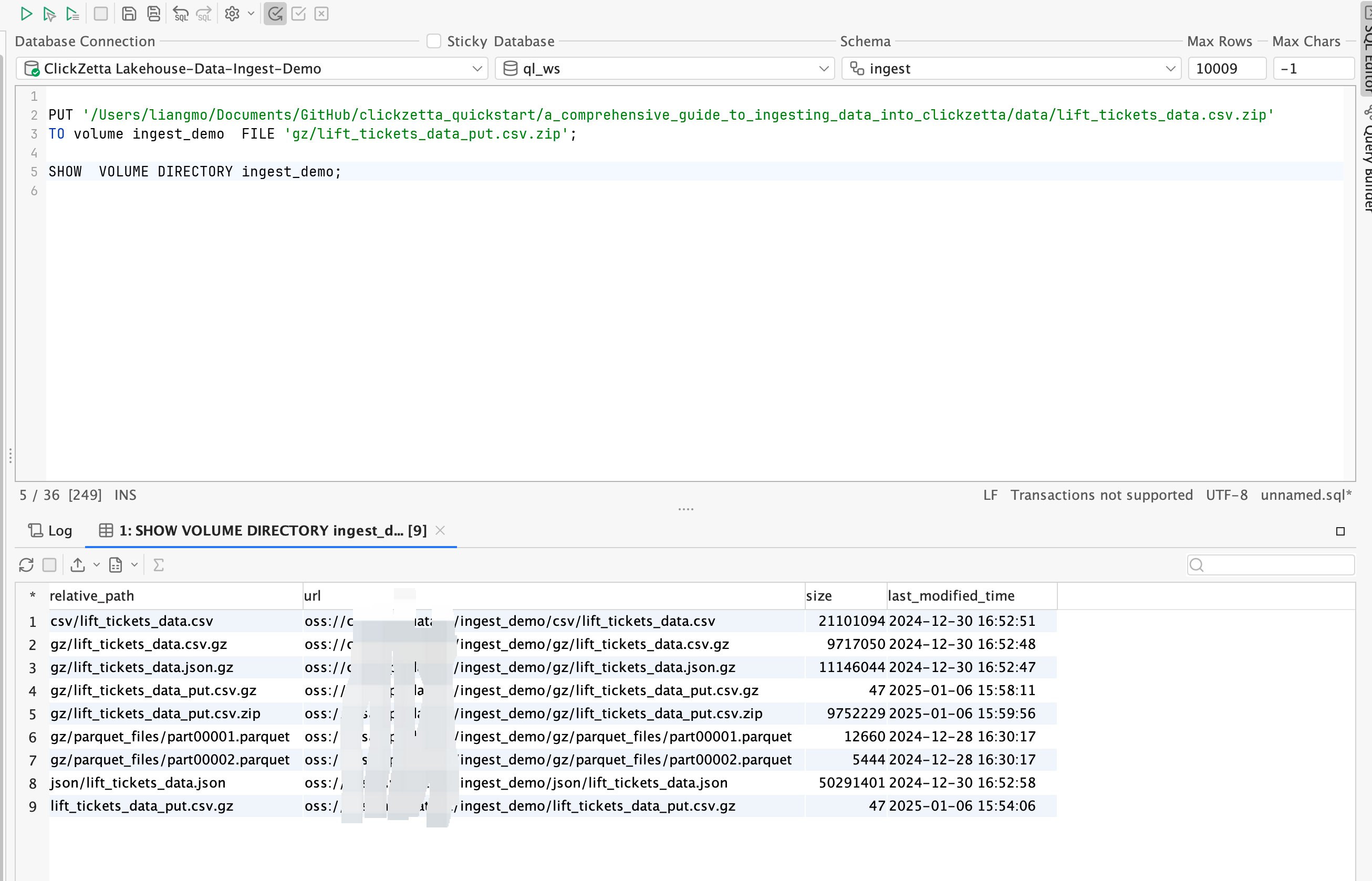 - Upload local files to the data lake Volume object.