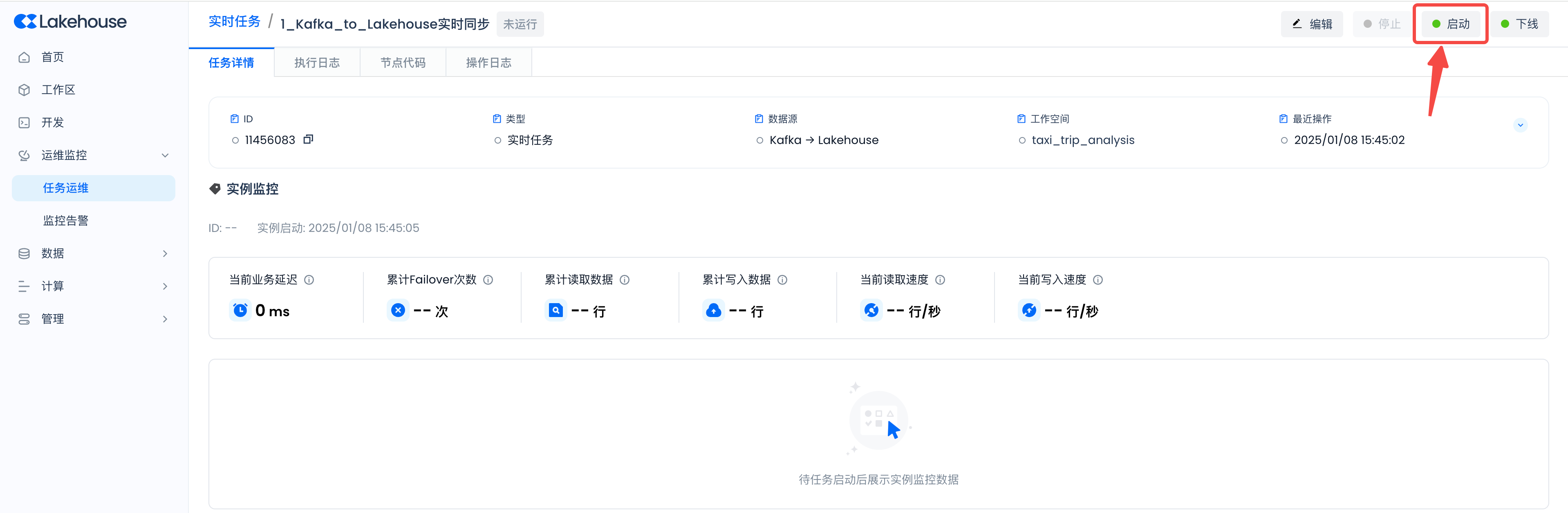 In the Operations Center, start the real-time sync task, observe the task running metrics, and verify if the data synchronization results are normal.