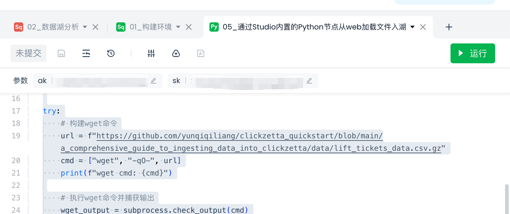 Data Ingestion: Loading Files from the Web into the Lakehouse via Singdata Lakehouse Studio's Built-in Python Node