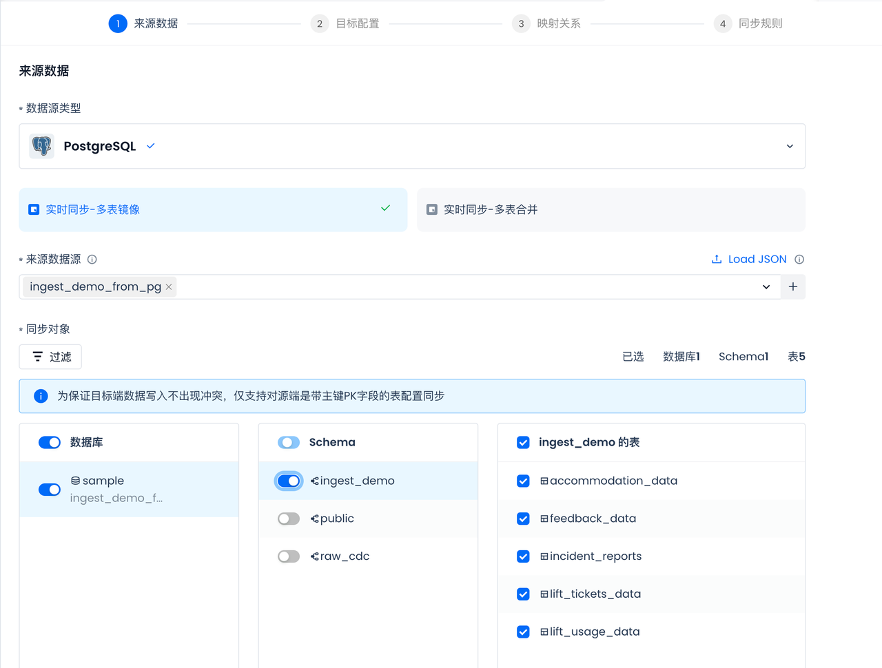 Singdata Lakehouse Studio's real-time multi-table synchronization supports multi-table merging, allowing data from multiple source tables in a structured system to be merged into a single Singdata Lakehouse target table.