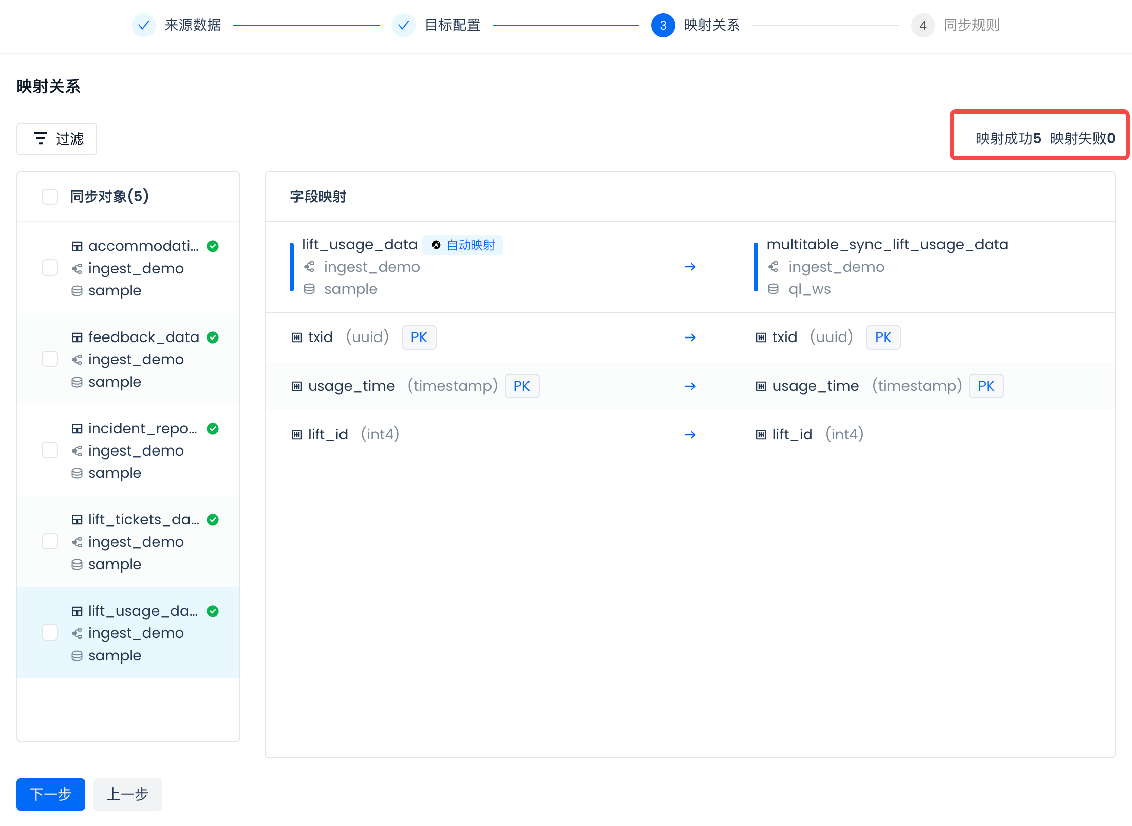 Singdata Lakehouse Studio will automatically synchronize the source database structure for selection: