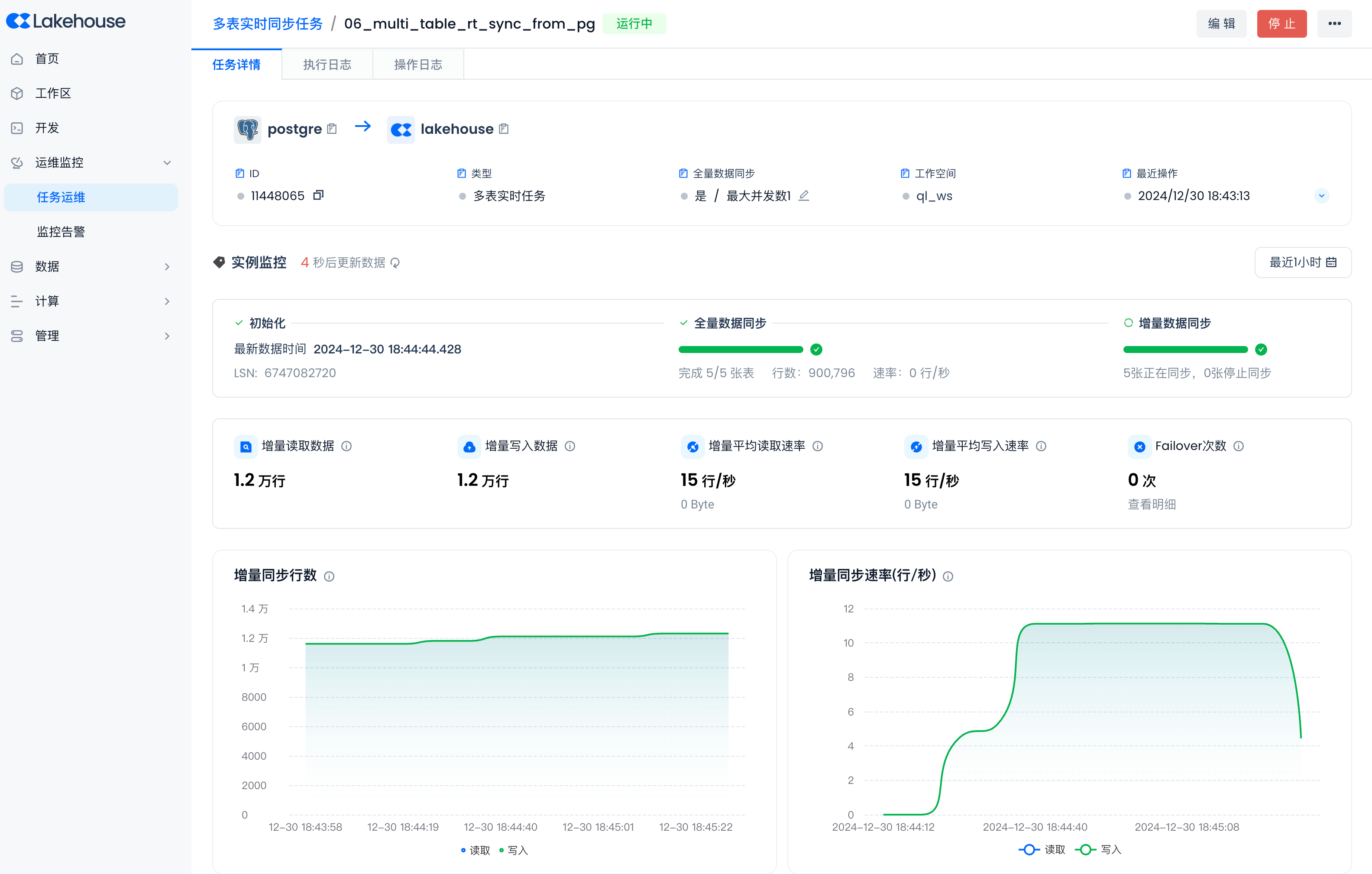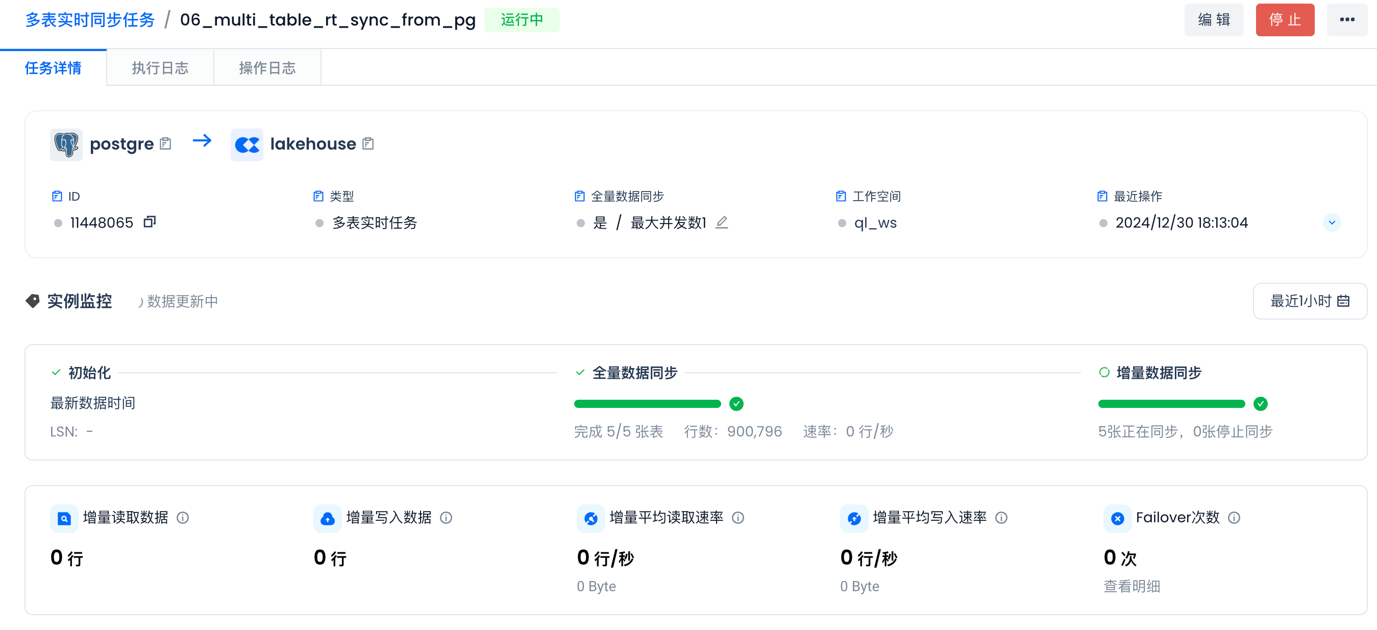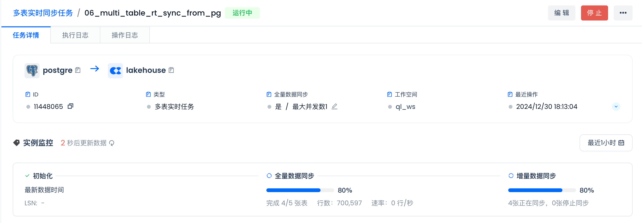 After starting, you can view the detailed status of the task. Once the full synchronization is complete, the system will automatically begin incremental real-time synchronization.