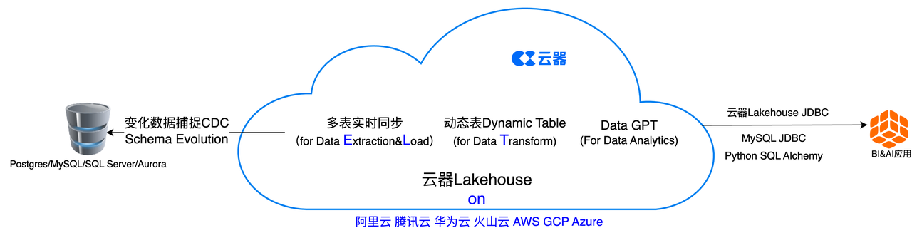 From an ELT perspective, Singdata Lakehouse's real-time multi-table synchronization achieves data extraction (Data Extraction) and loading (Load) based on CDC, and during this process, schema evolution is realized, meaning the synchronization content will include changes in the structure or schema of the source database. Dynamic Table implements data transformation (Data Transform) in a brand-new way.