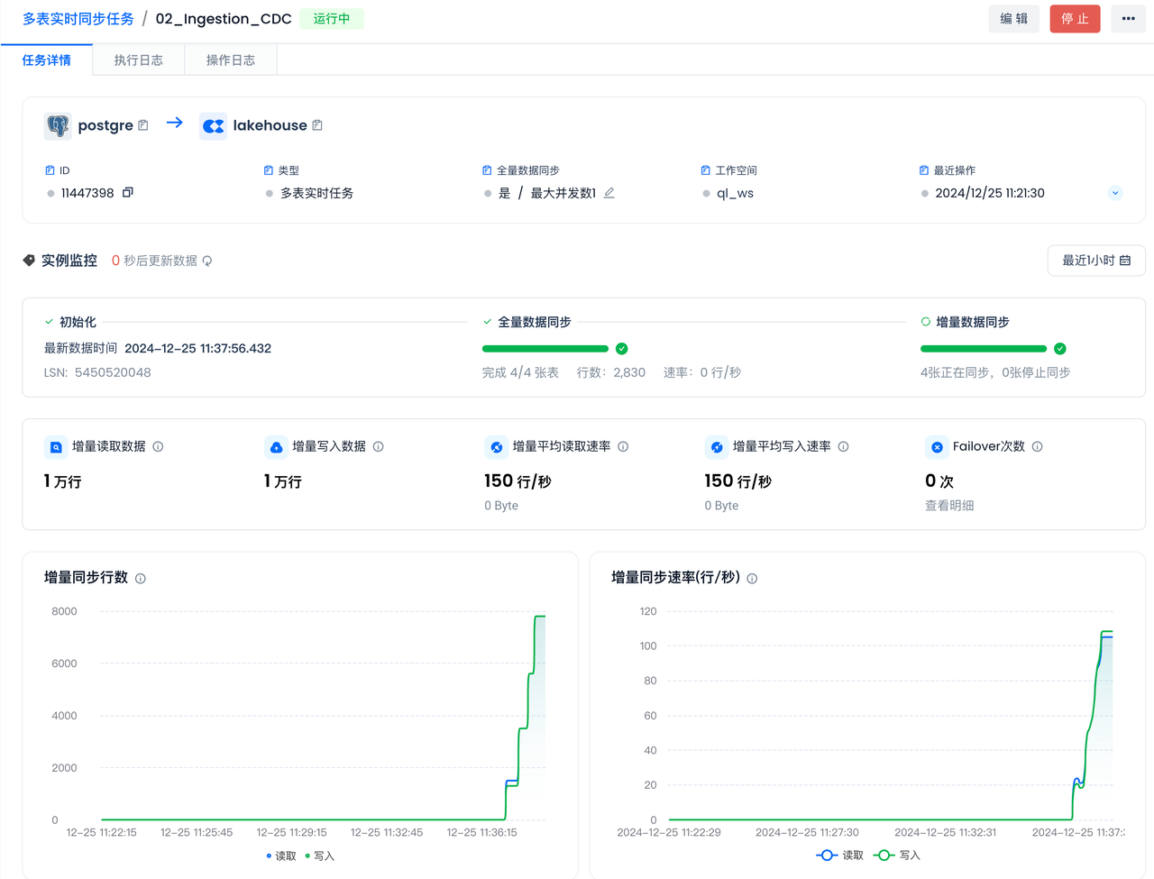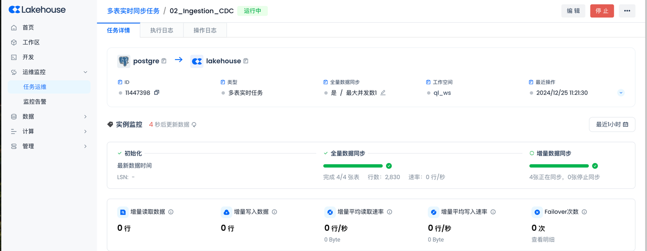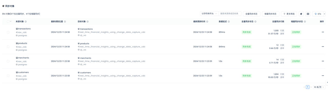 You can see that the full sync has been completed. After that, the incremental sync status will automatically switch to "Syncing" without manual intervention.