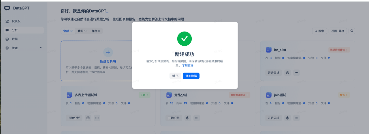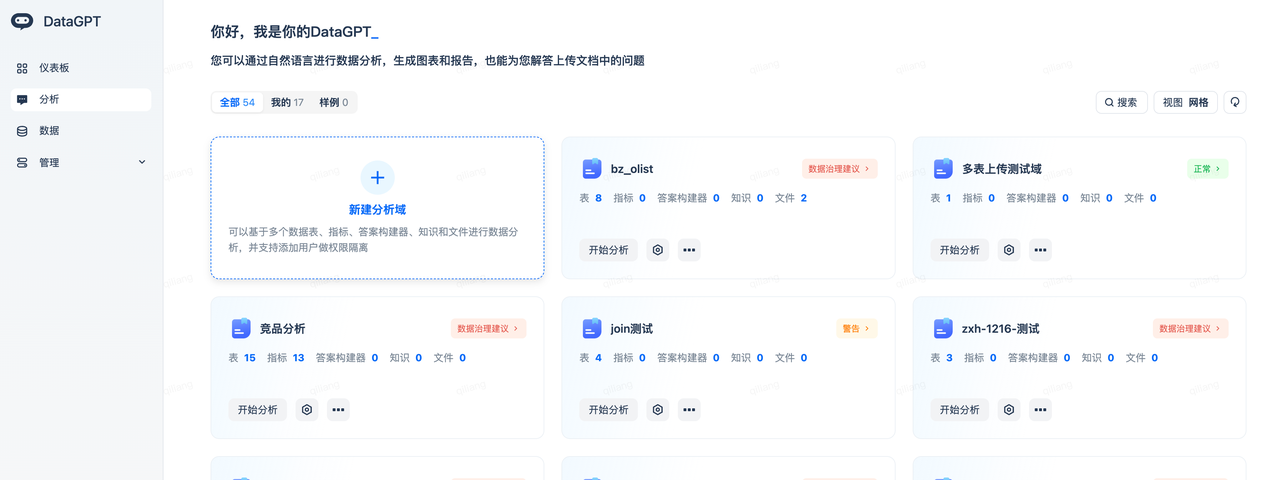 Enter the following analysis domain page to start data exploration and conversational analysis.