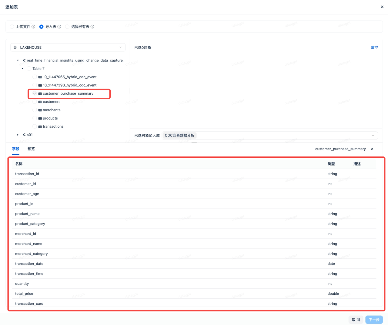 - Schema Selection: real_time_financial_insights_using_change_data_capture_cdc