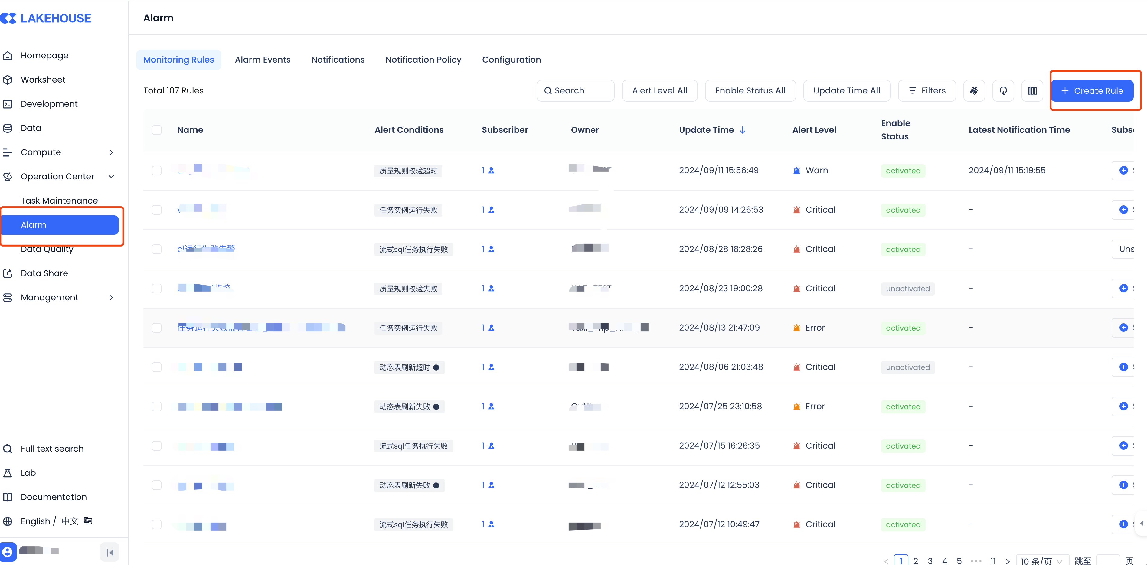 By using the built-in features of Lakehouse Studio for data development, task scheduling, task operations, data quality, and monitoring alerts, you can be immediately alerted to handle task failures. Through operation auditing to locate changes, using version management for rollback, and rerunning task instances based on the rolled-back code, you can quickly handle issues. At the same time, the linkage between monitoring alert events and task instance status ensures that successful reruns will automatically close alerts without manual intervention, reducing the alert handling process. This can significantly save time in troubleshooting and data production recovery.