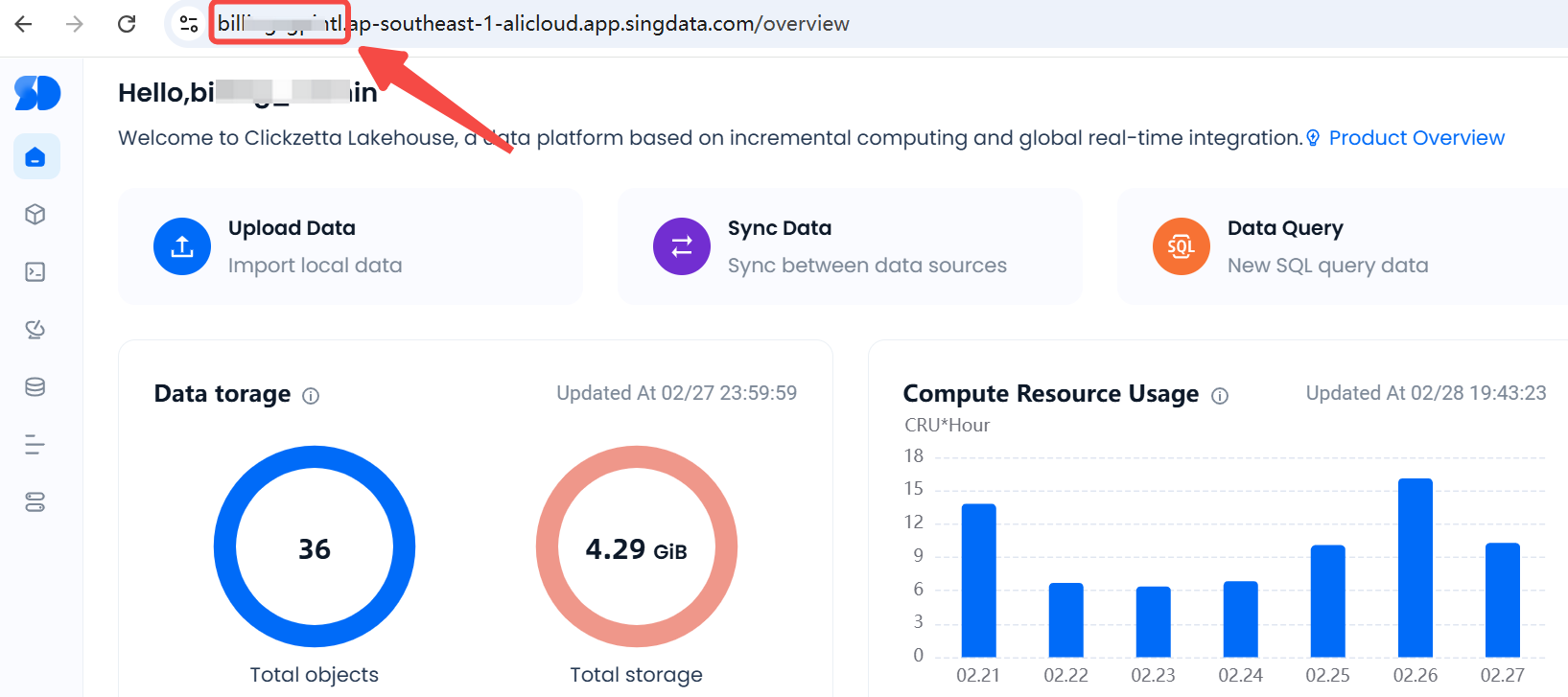 The instance name is globally unique in the Lakehouse service. Data consumer users can find their instance name on the right side of the homepage or in the URL of the service instance and provide it to the sharer for configuration.