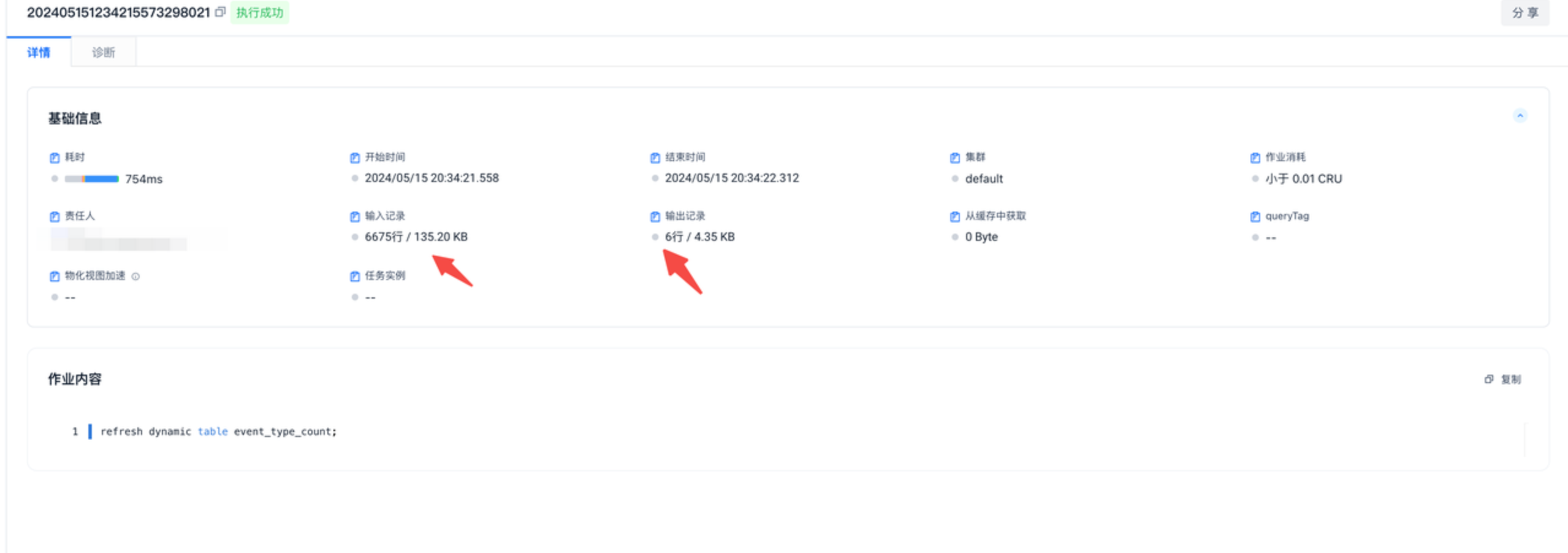 Click into the details to view the input records and see how many incremental records were obtained. In the diagnostics, you can view the execution plan of the incremental SQL.