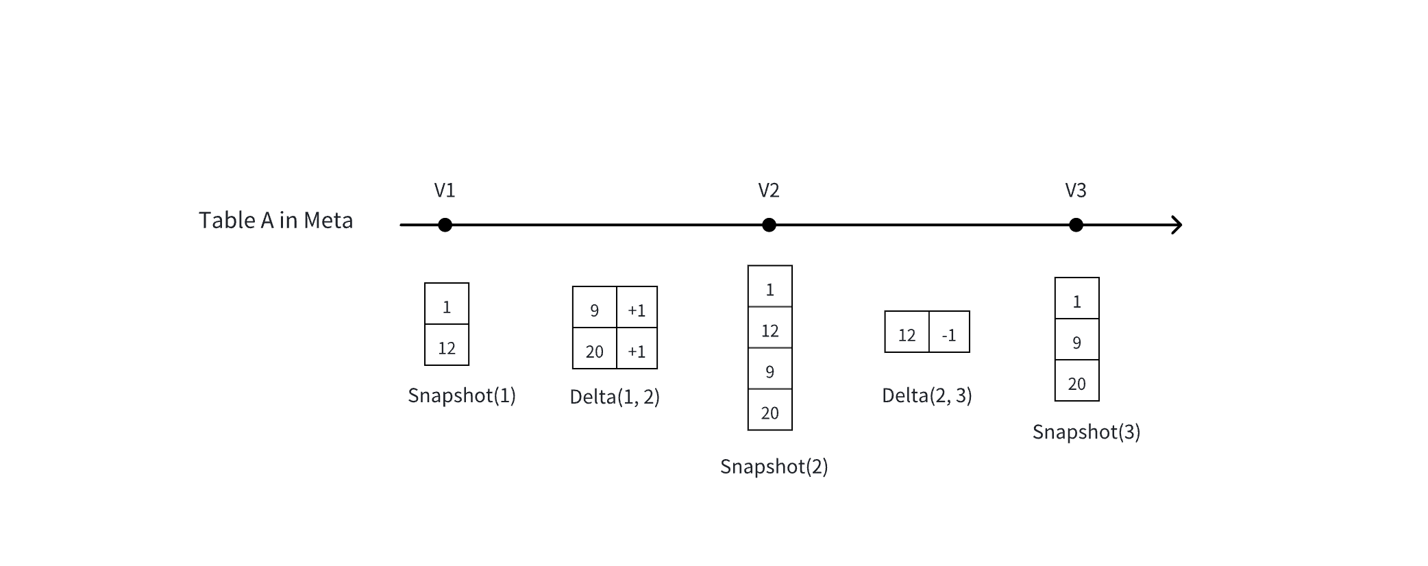 - Basic concept: A table's Snapshot (full) VS Delta (change)
