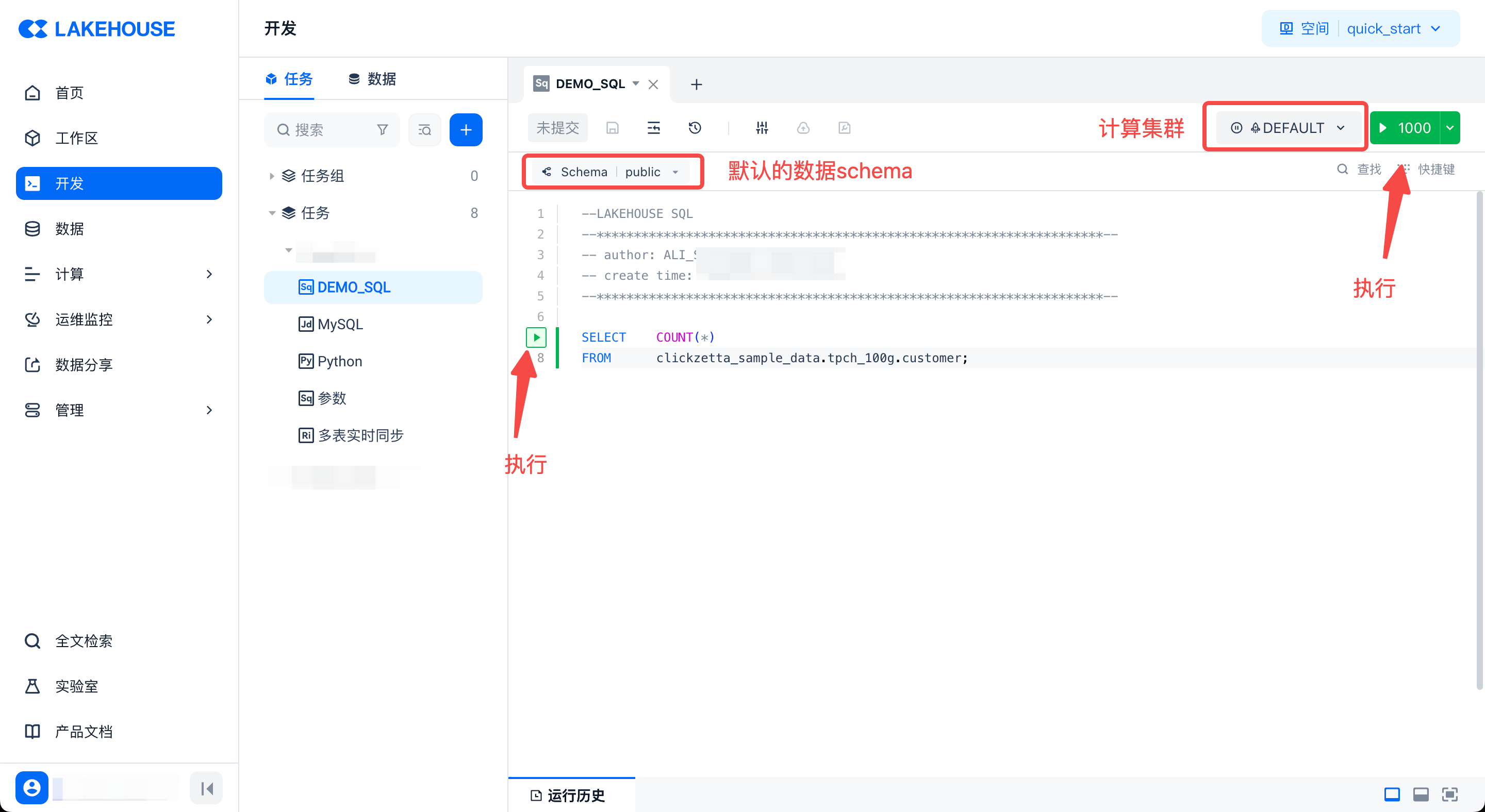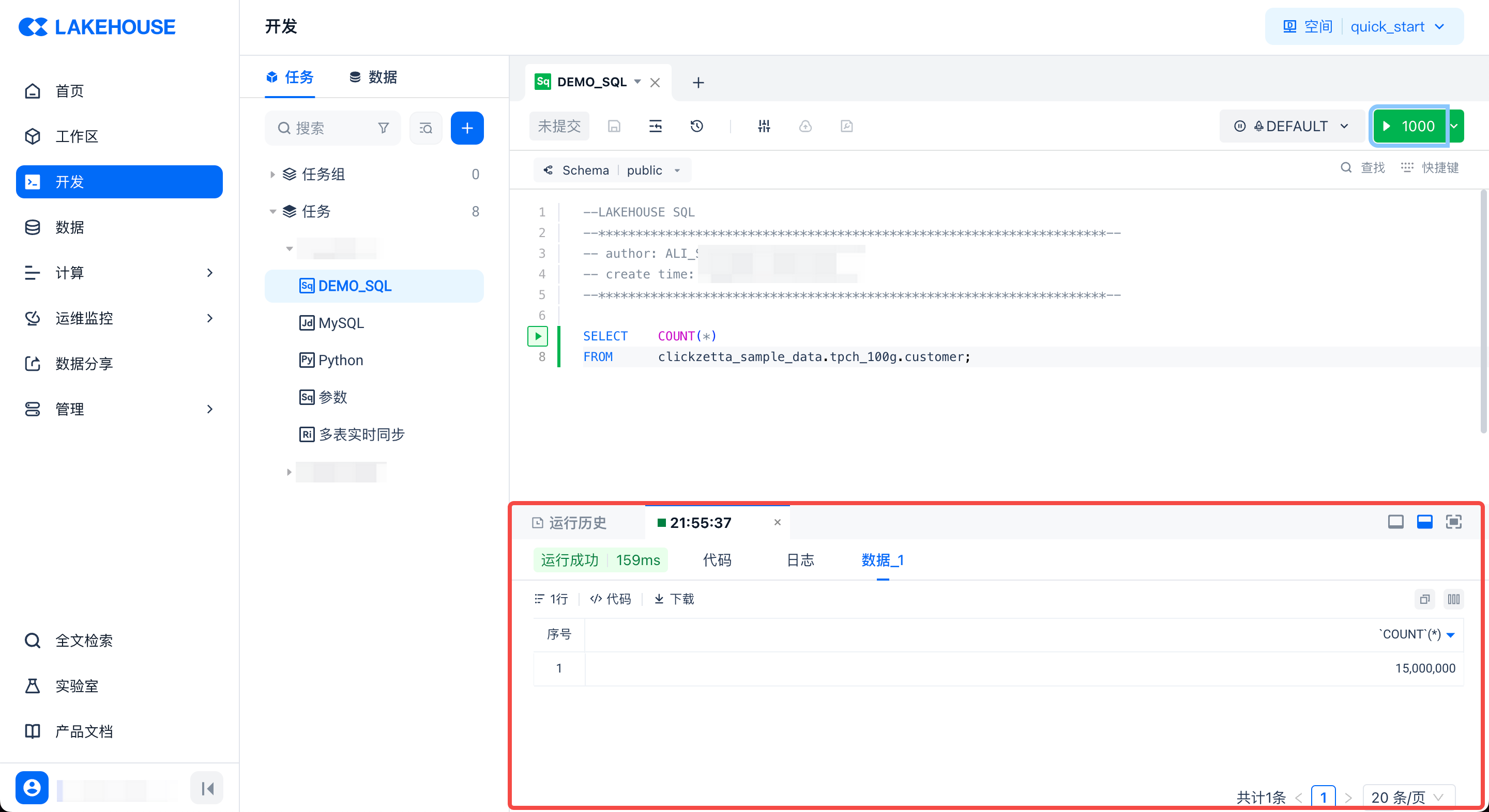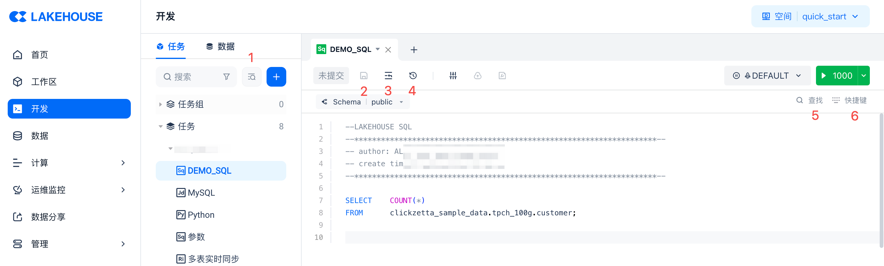 Lakehouse provides an integrated data processing engine to support data processing and analysis. The development language for the Lakehouse engine is SQL. This article briefly introduces how to quickly write and run SQL statements through the task development web interface of Lakehouse Studio for query analysis.