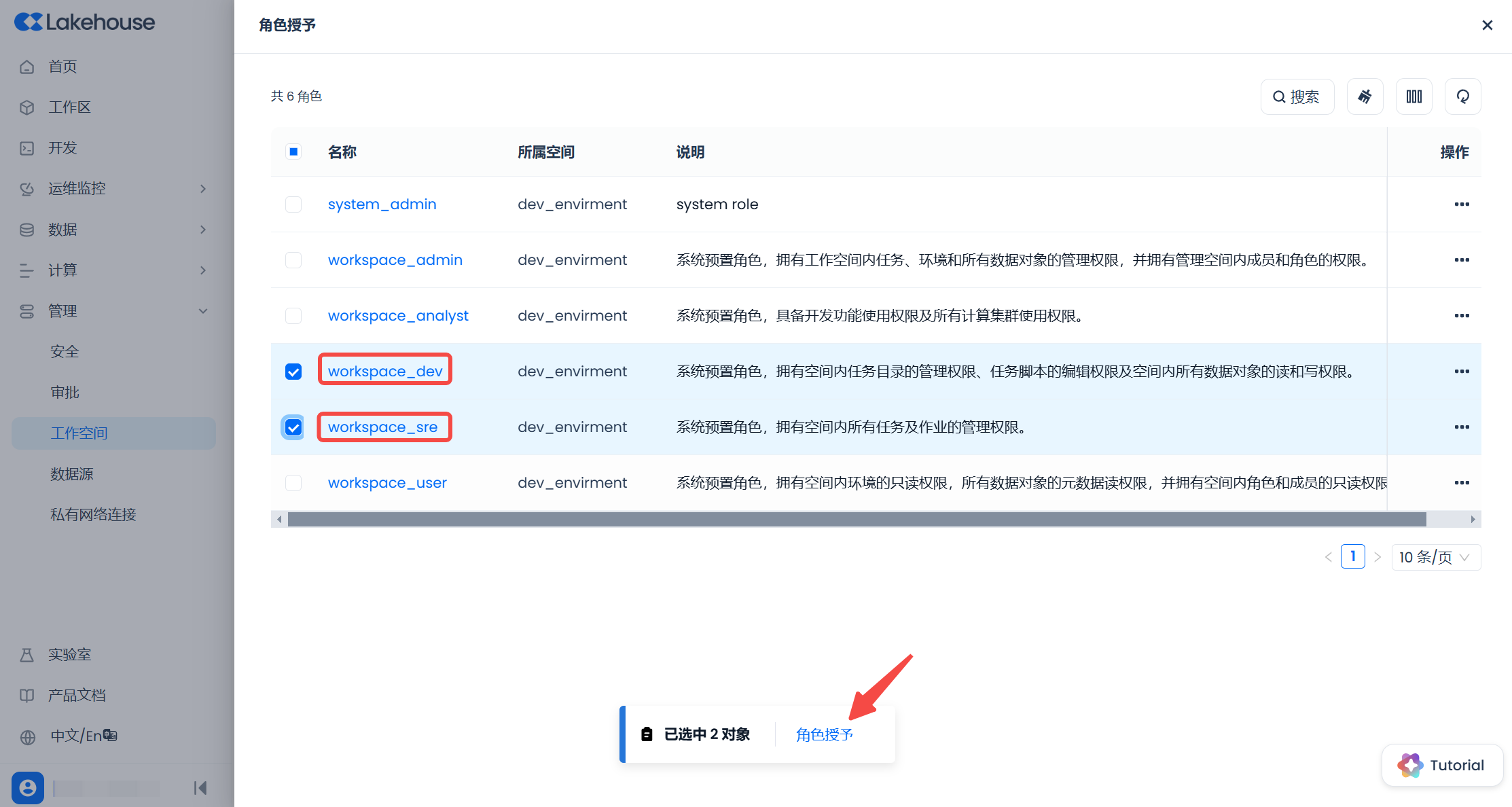 The above authorization operations, including adding users to the workspace and granting roles, can also be completed through the WEB page.