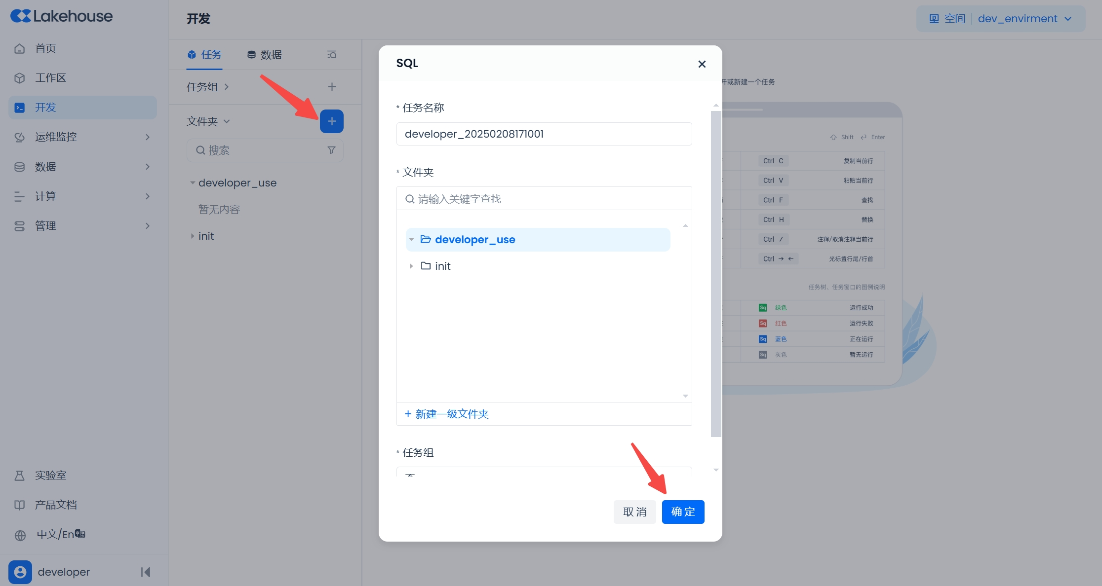 developer user, can use the "development" feature; can read and write all data under the dev_environment workspace, and can create and delete objects such as tables and views; can use all computing cluster resources under the dev_environment workspace; can submit and maintain periodic tasks under the dev_environment workspace.