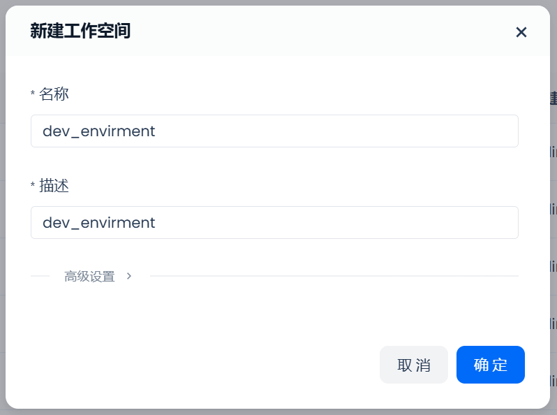 Enter the workspace name in the pop-up window and click "OK" to complete the workspace creation: