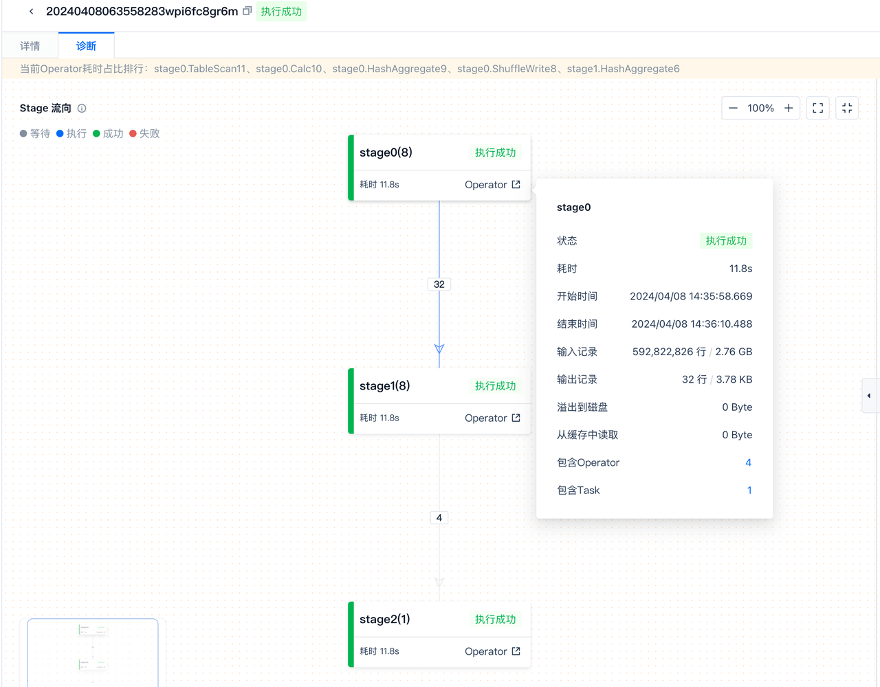 Result cache size limit: No limit. Results less than or equal to 10MB will be cached in the control layer memory cache, while results exceeding 10MB will be persisted in the storage layer (object storage files).