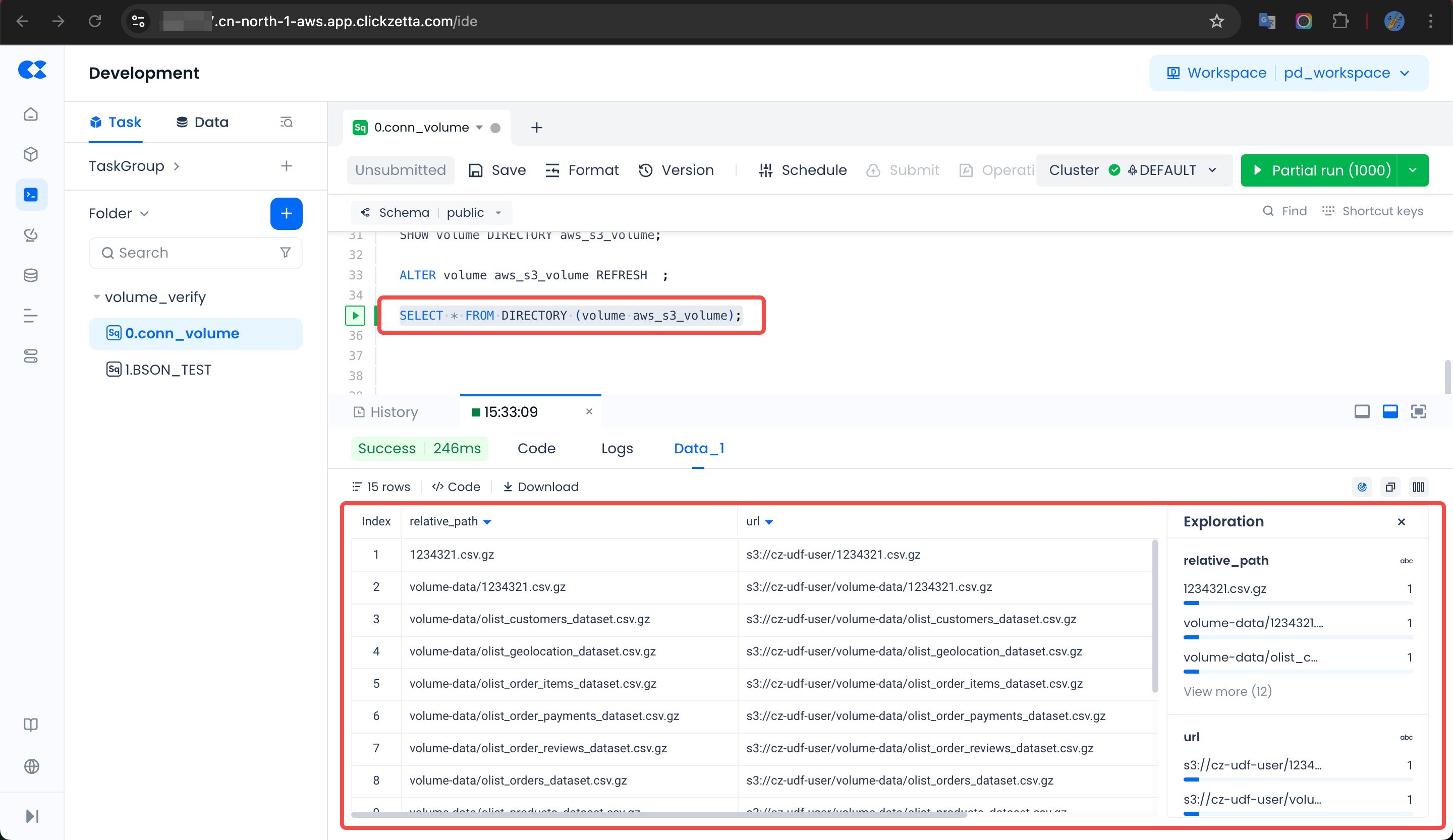 After the STORAGE CONNECTION is created, you can create a VOLUME object to access object storage data.