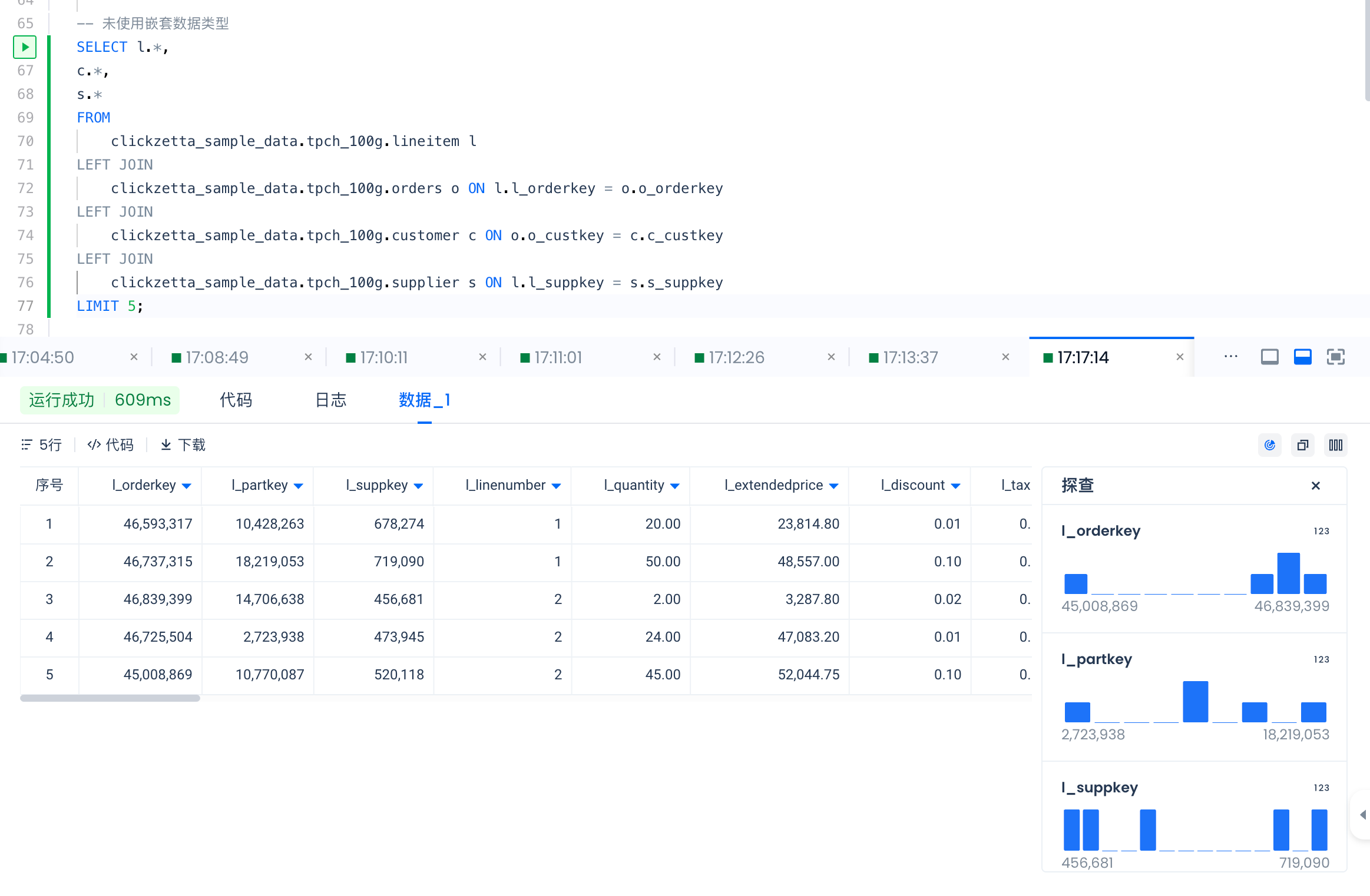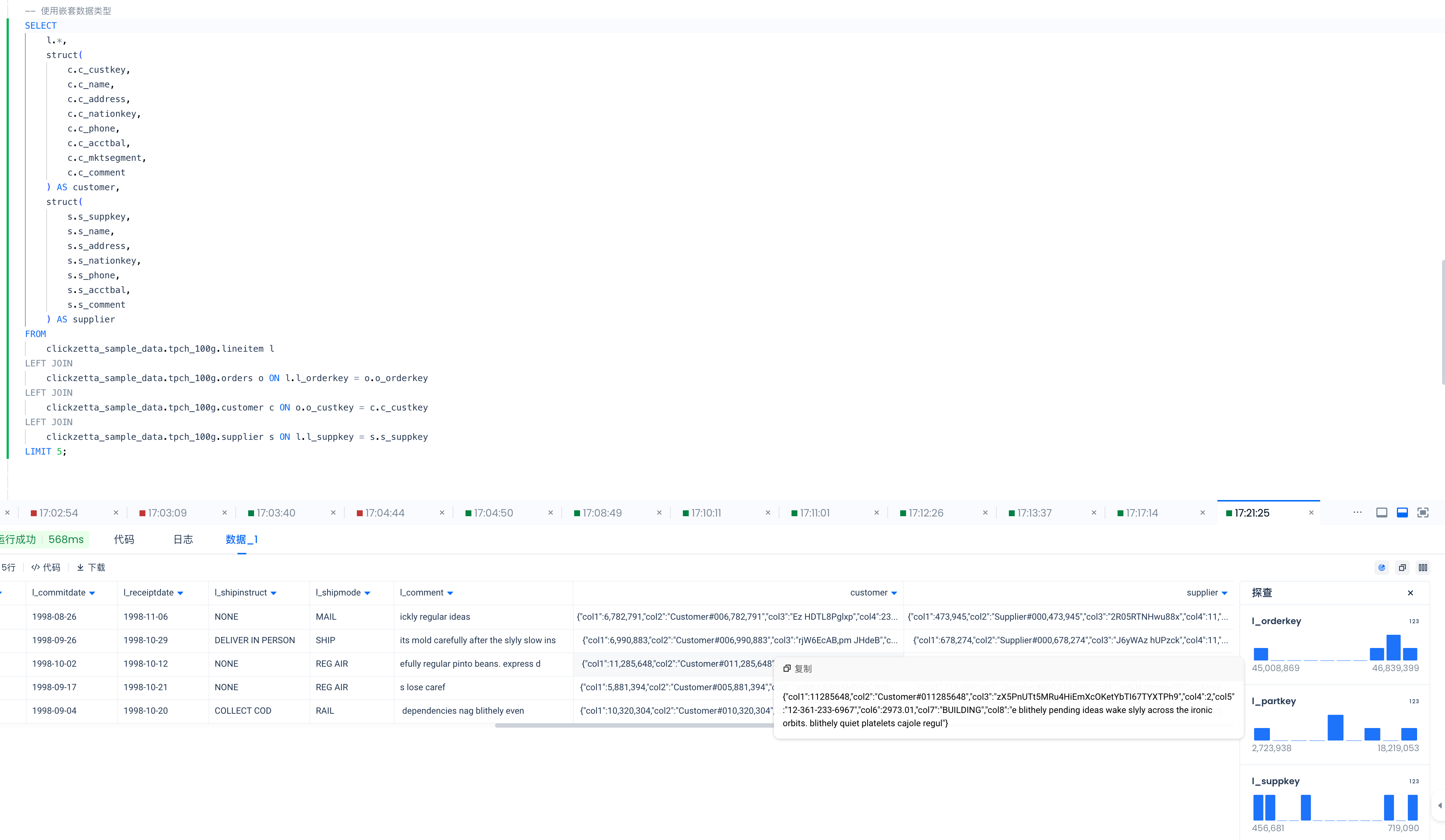clickzetta_sample_data.tpch_100g.supplier s ON l.l_suppkey = s.s_suppkey