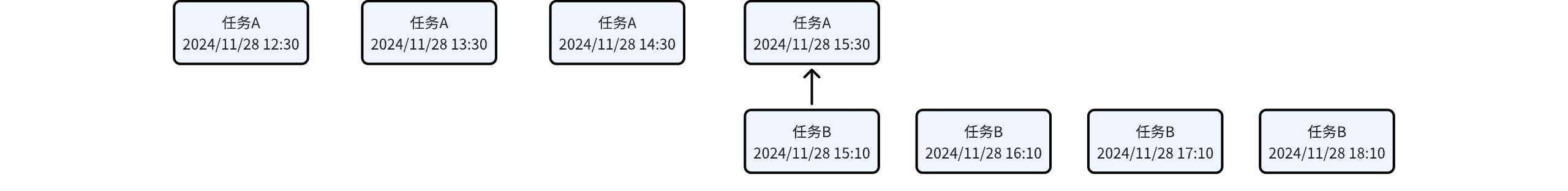 | Task A: 12:30-15:59 interval, generate an instance every 1 hour. A total of 4 instances, the first instance at 12:31. Task B: 15:10-18:59 interval, generate an instance every 1 hour. A total of 4 instances, the first instance at 15:10. | ![]() | |