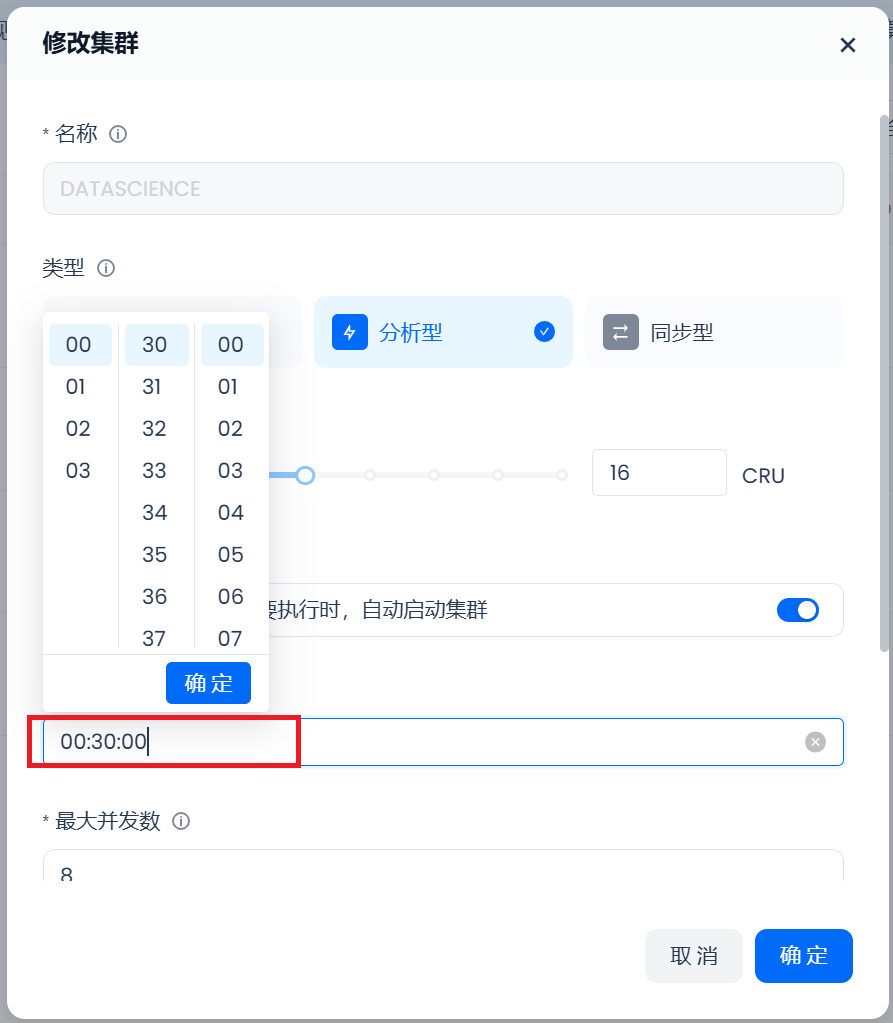 2. During the analysis phase, disable auto-stop or set the auto-stop time to more than 30 minutes to retain cache, significantly improving speed during repeated queries.