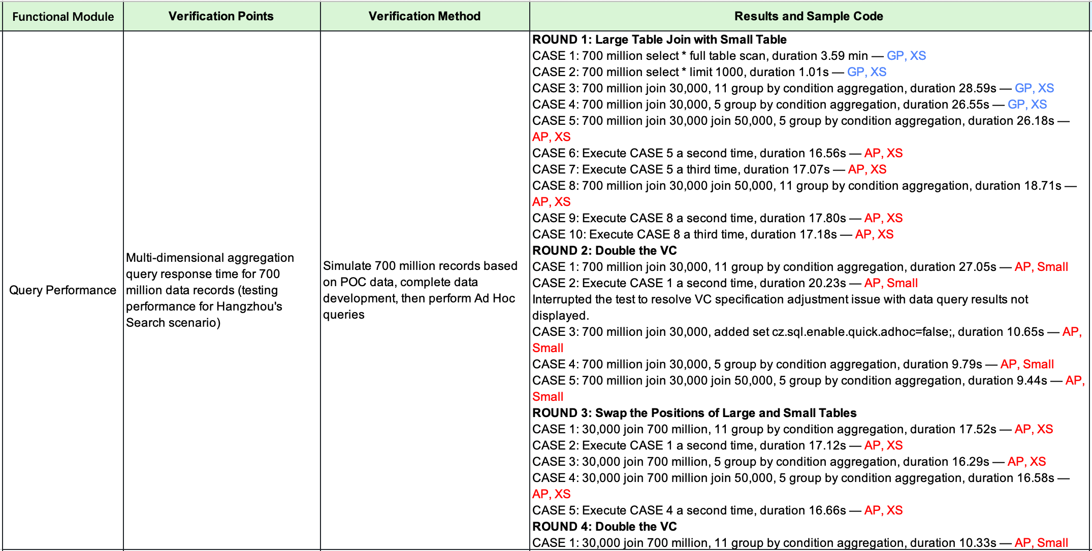 - Regarding the query performance of the computing engine, we selected a typical scenario to perform verification tests on the engine. After loading the test data from OSS to Singdata Lakehouse, it is preprocessed in the General Purpose Virtual Cluster, and then the result table is directly queried by the business system in the Analytical Purpose Virtual Cluster of Singdata. Here are some performance verification results. First, we verified the query situation of over 700 million data. Under the same or lower resource specifications as the original platform, the engine can return data within 10 seconds. For this, the platform team conducted multiple rounds of queries of various types. Without performance tuning, it can basically meet the linear scaling requirements. By expanding the computing resource specifications, the computing consumption time can be proportionally reduced accordingly, thus obtaining performance indicators that are very satisfactory to both the technology team and the business team.