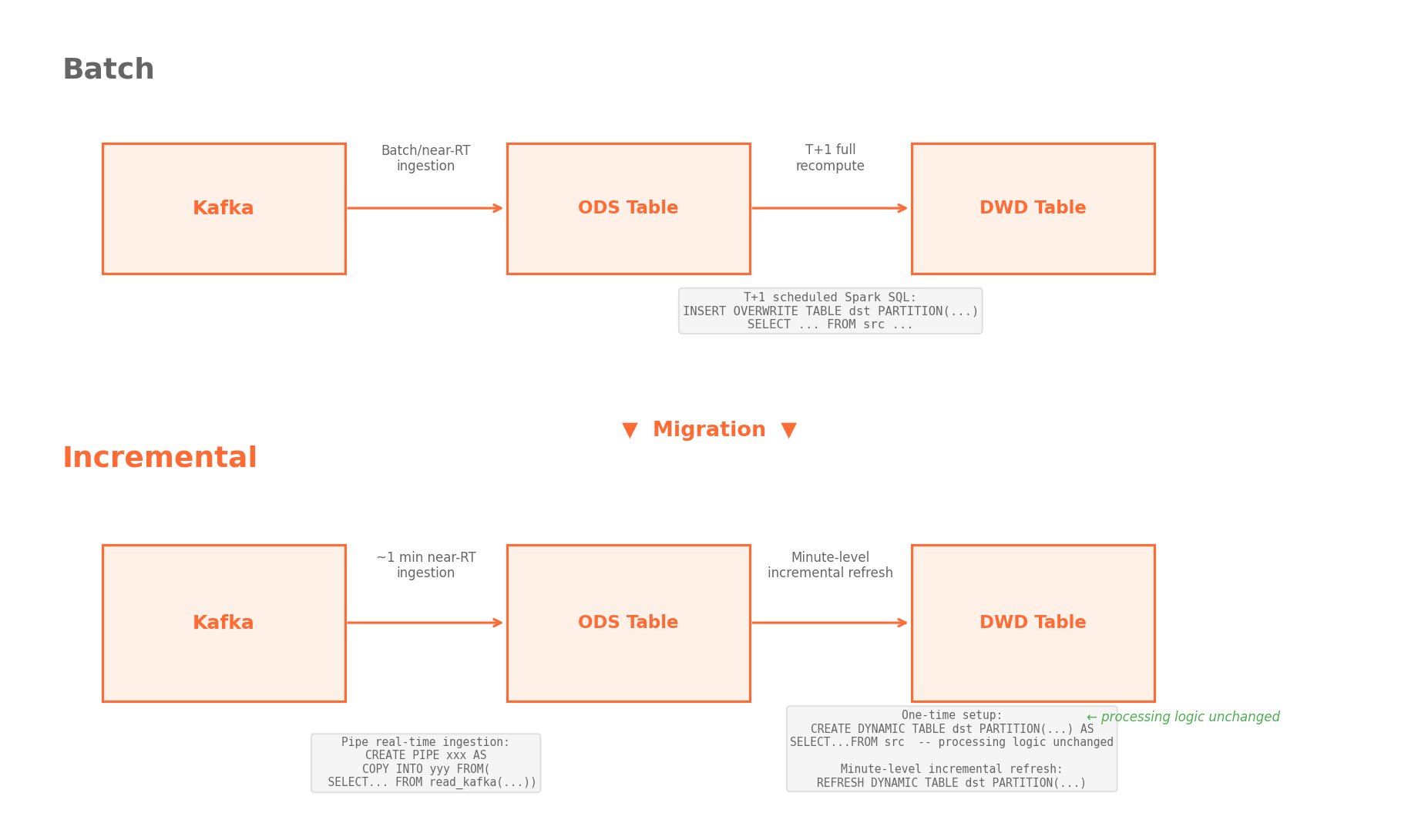 Migration was easy. The SQL syntax and processing logic are identical to batch. Most of the work was copy-paste, with minor scheduling config changes. No query rewrites.
