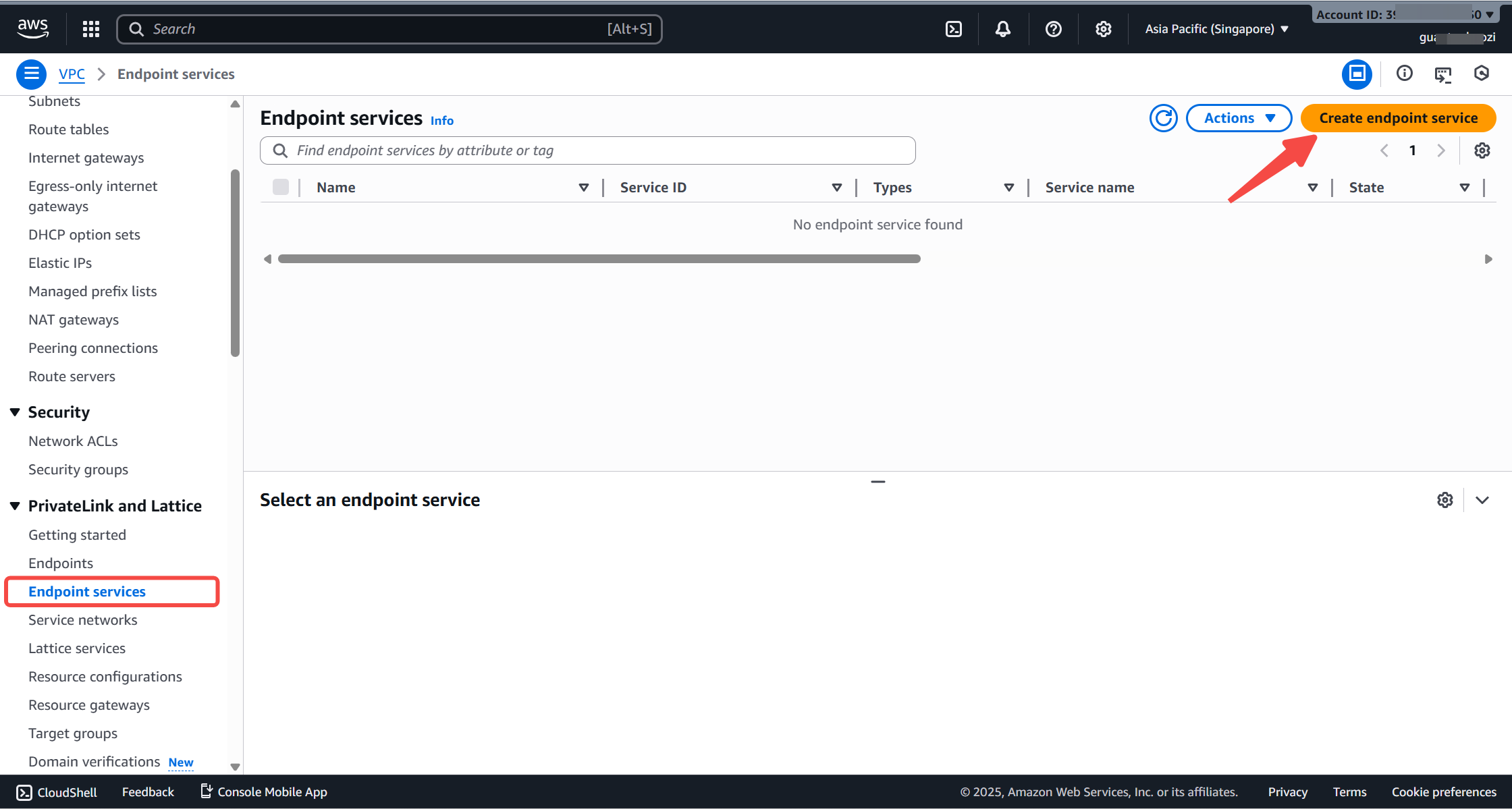 Click Create endpoint service.