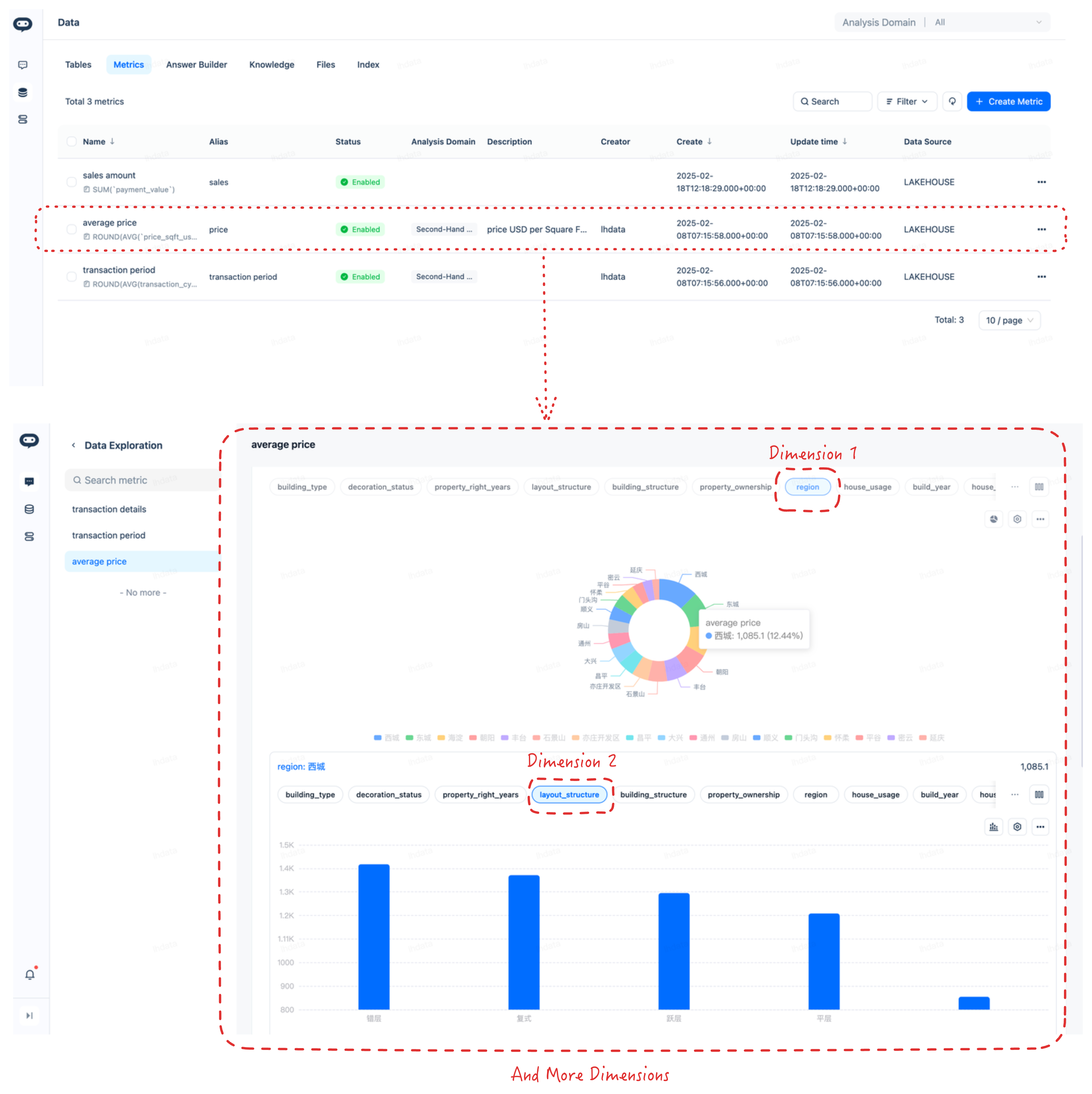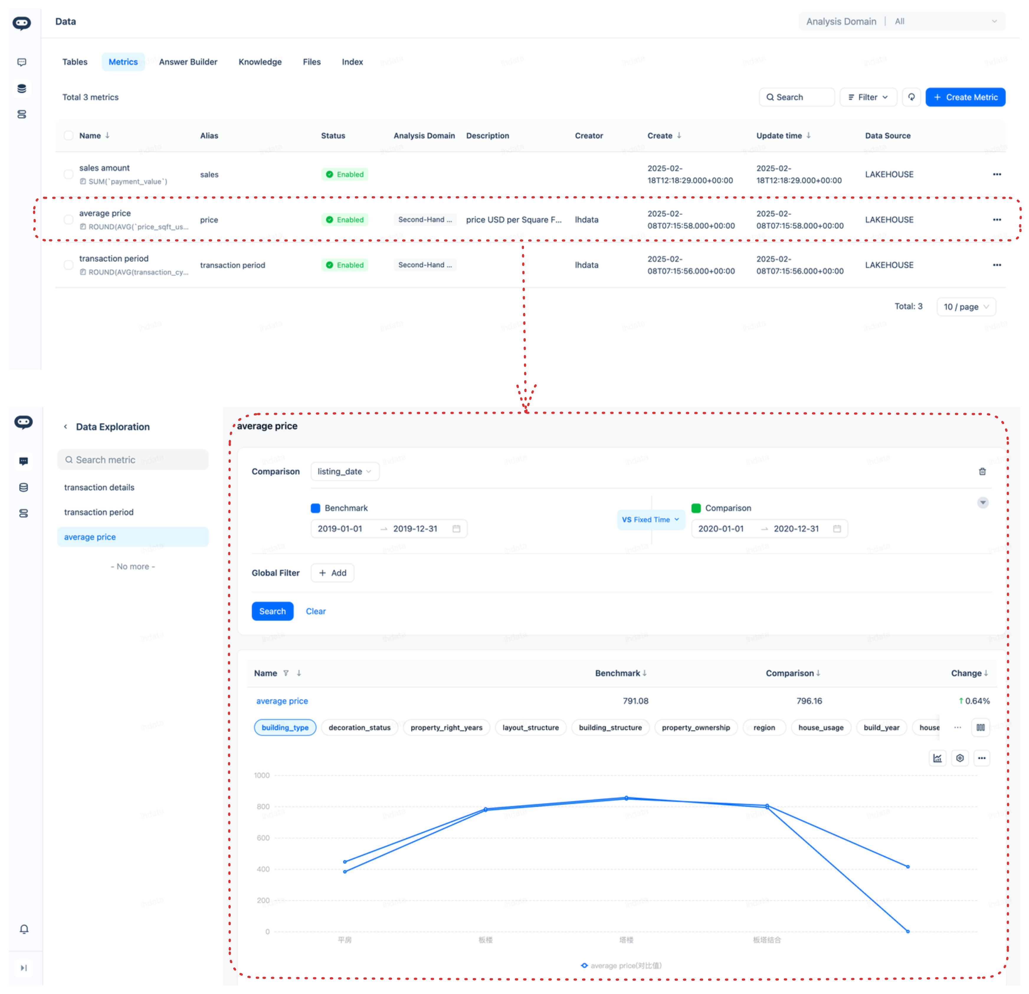 Metrics and Answer Builder: For specific calculation needs, the system can provide answers using predefined SQL templates.