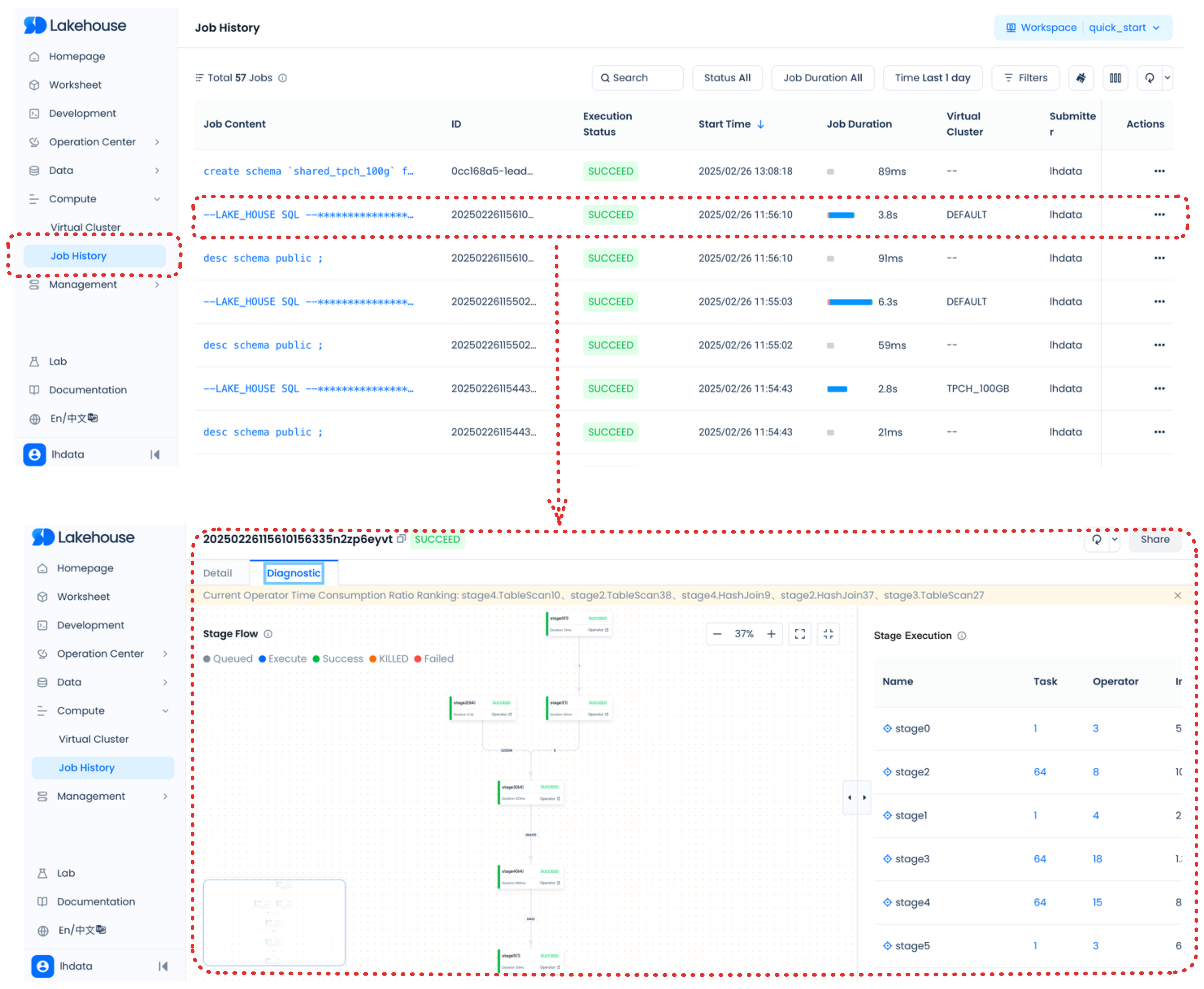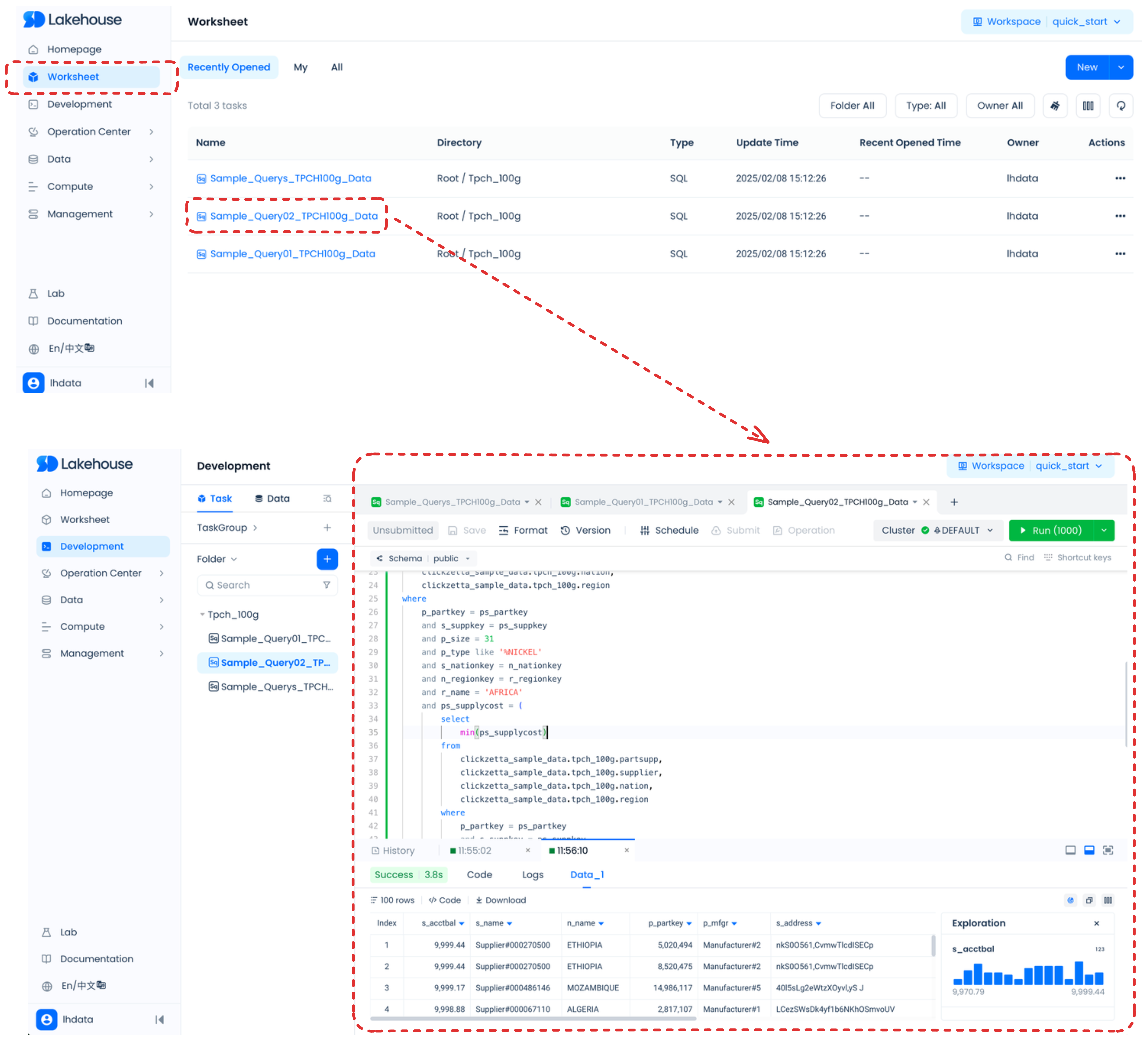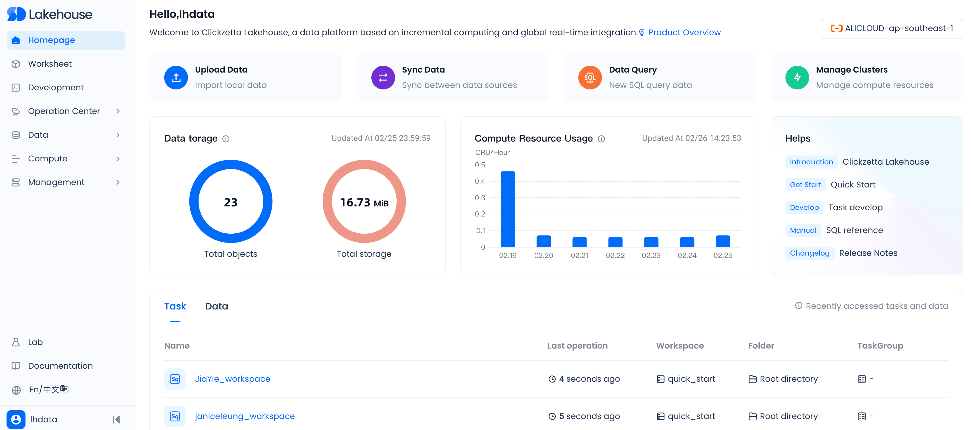 For more information about these and other tasks that you can perform, see Singdata Lakehouse Studio: The Singdata Lakehouse web interface.