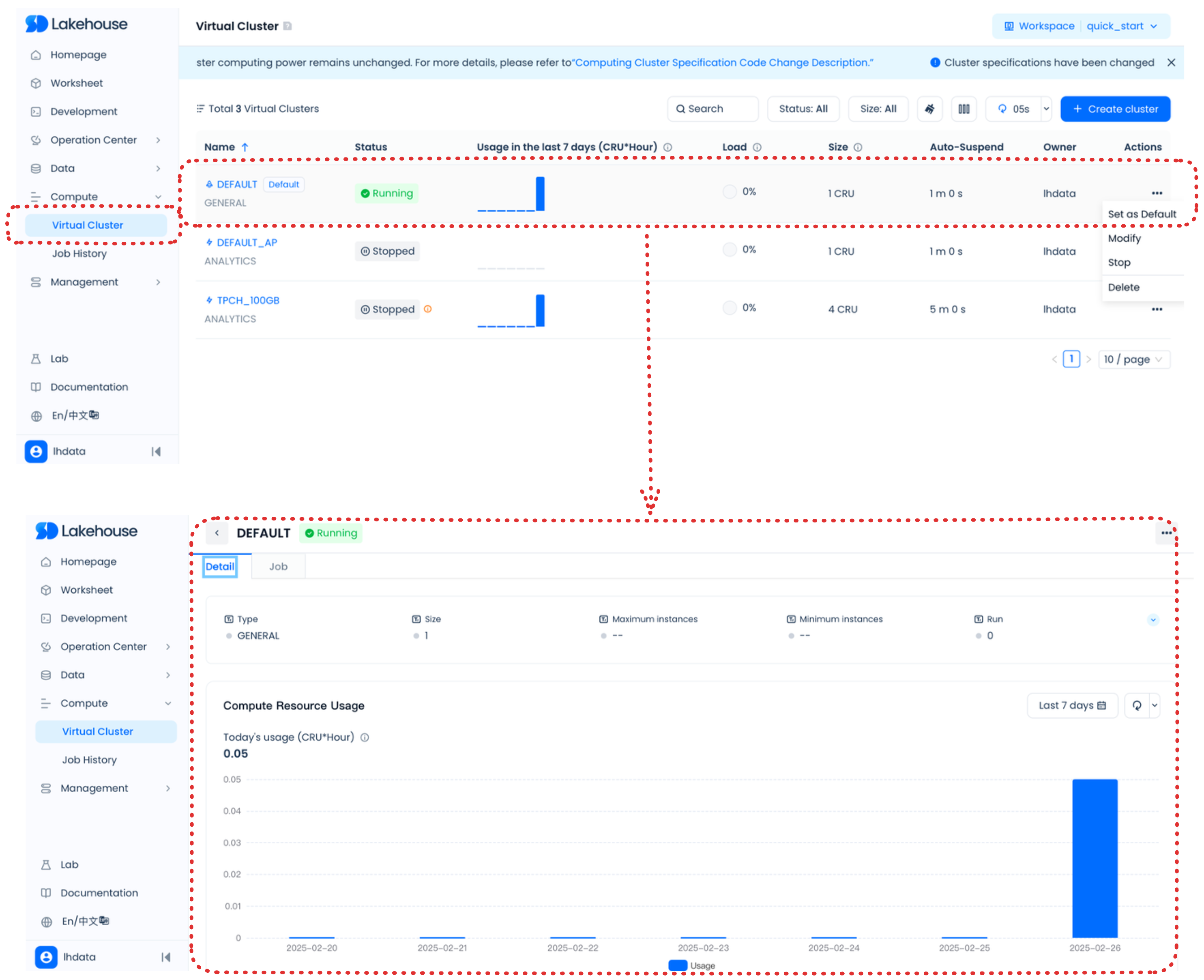 Perform Computing Resouce Management and admin Singdata Lakehouse Studio