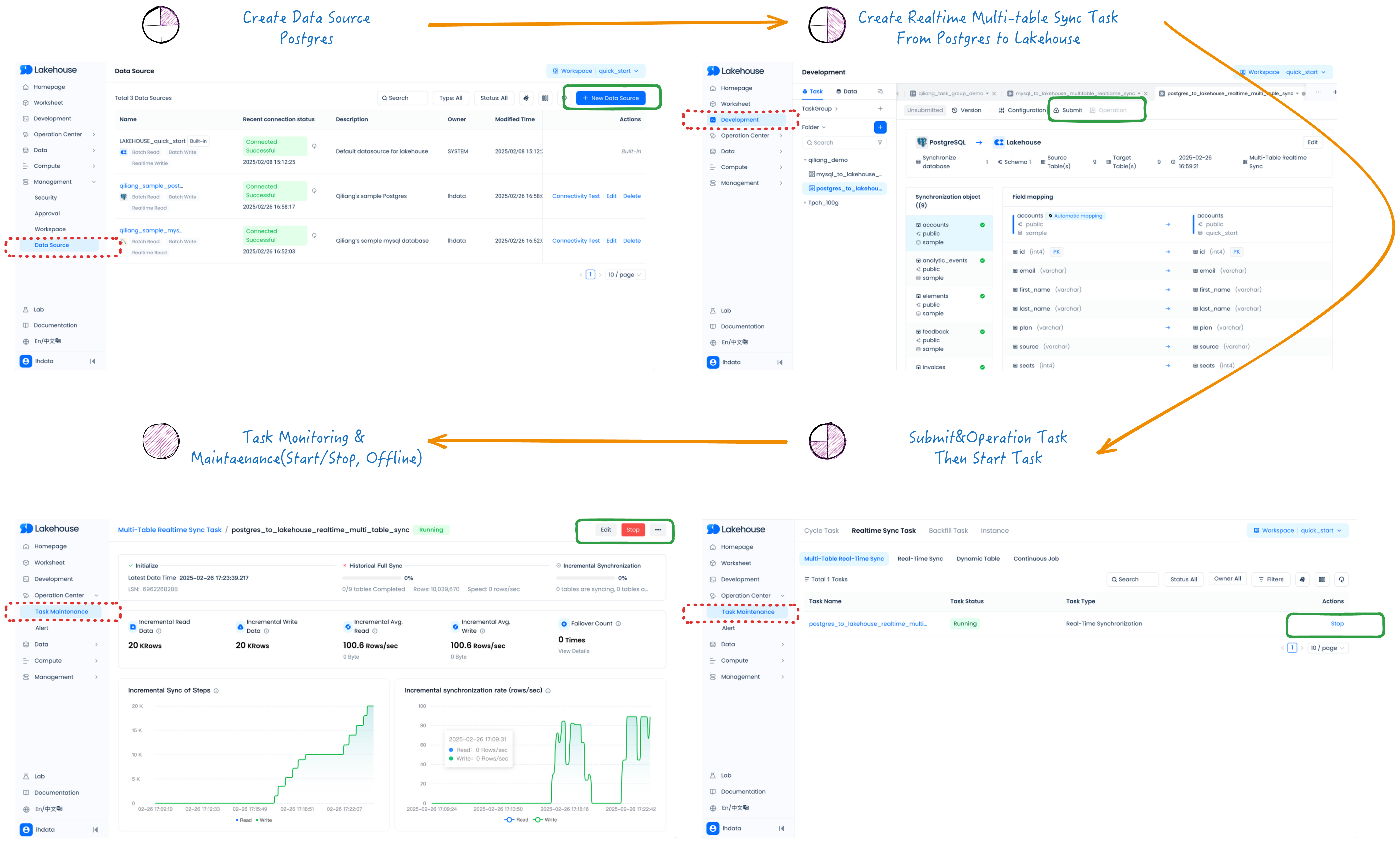 - Data synchronization Tasks, ingest data from data sources such as database/data warehouse/data lake into Singdata Lakehouse,and export data from Singdata Lakehouse to other data sources.