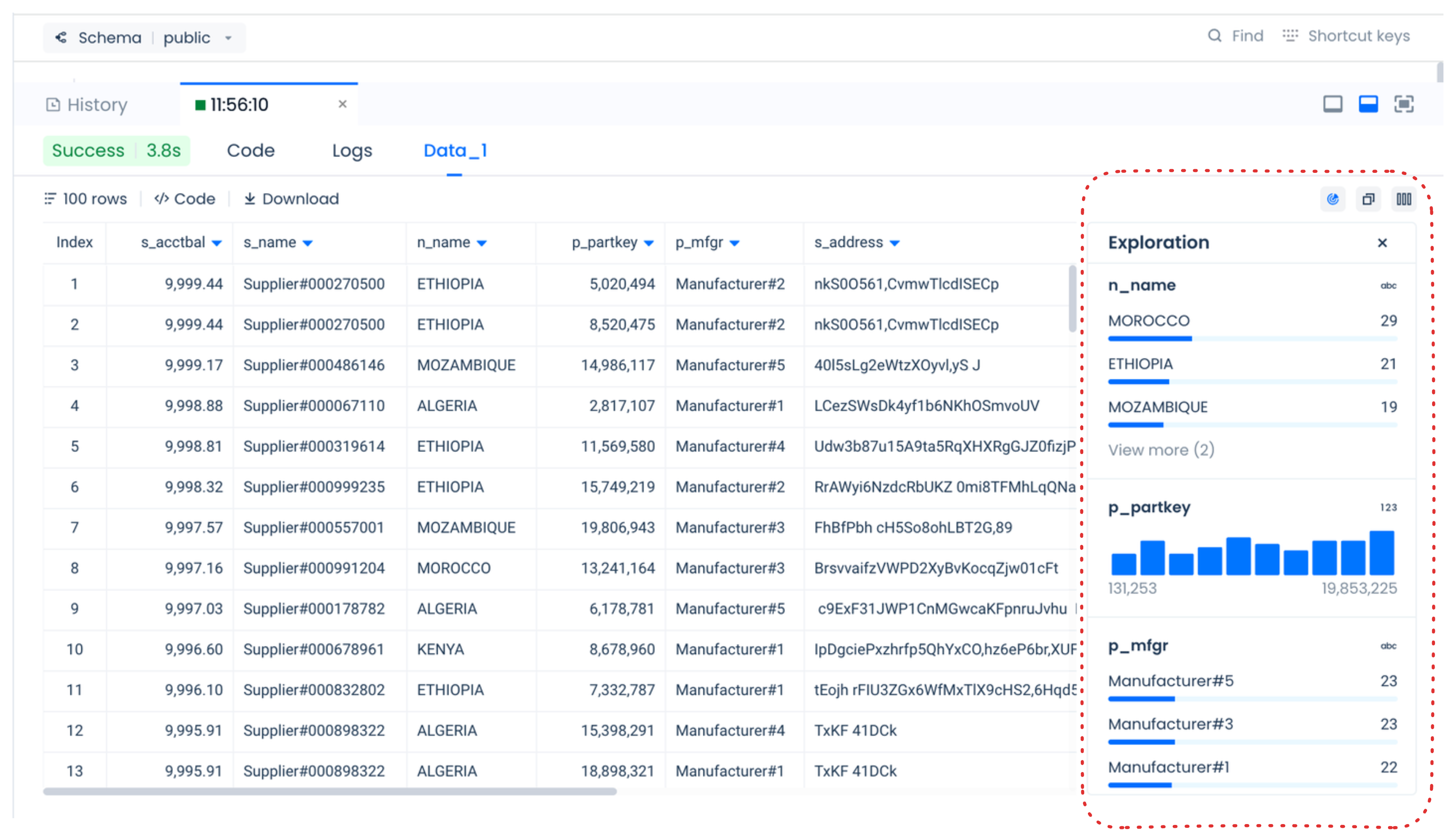 When you run a query in Singdata Lakehouse Studio, you can choose to view your results's data profile exploration.