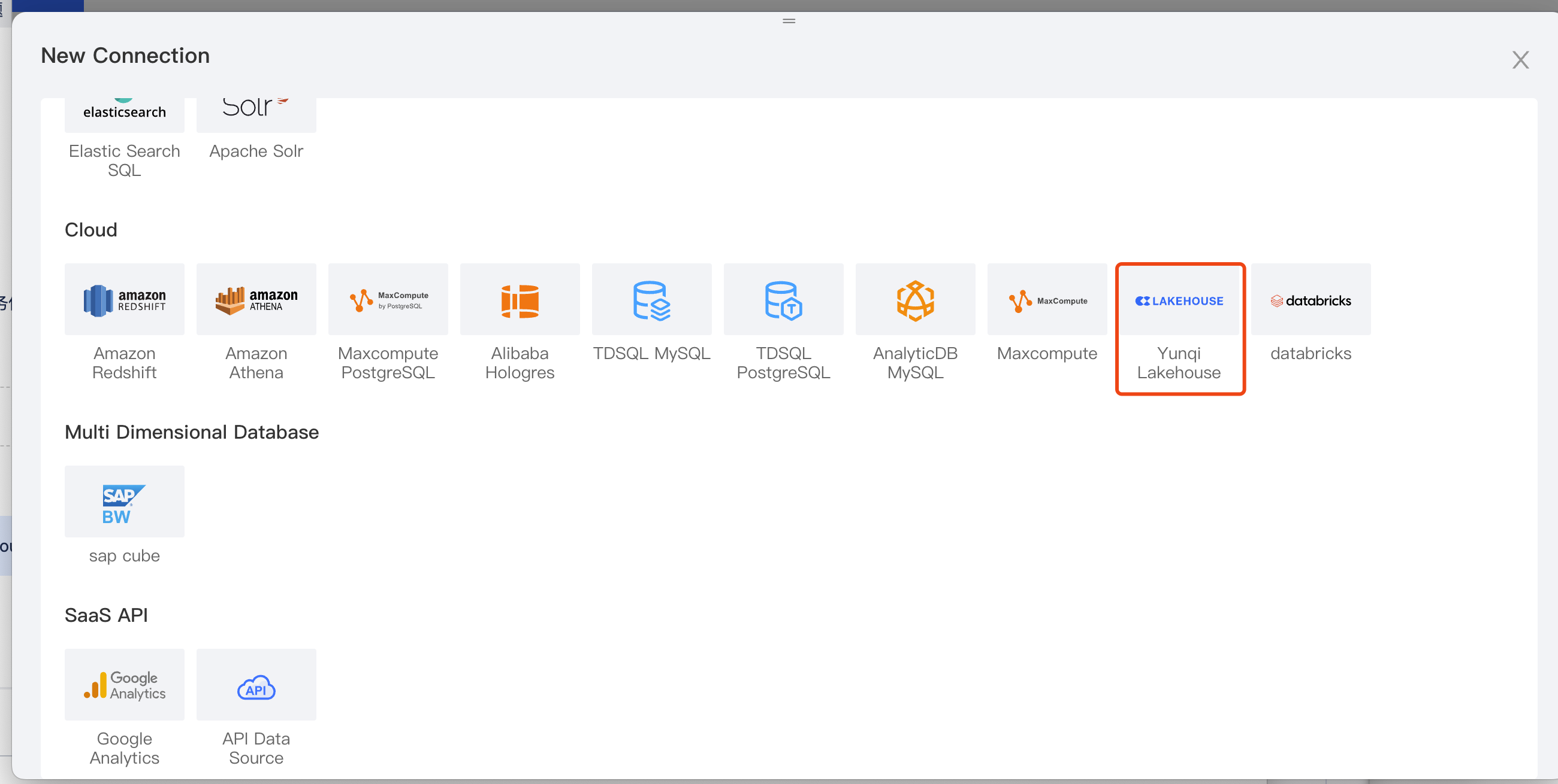 Select Data Source Type: Choose the Singdata Lakehouse data source under Cloud.