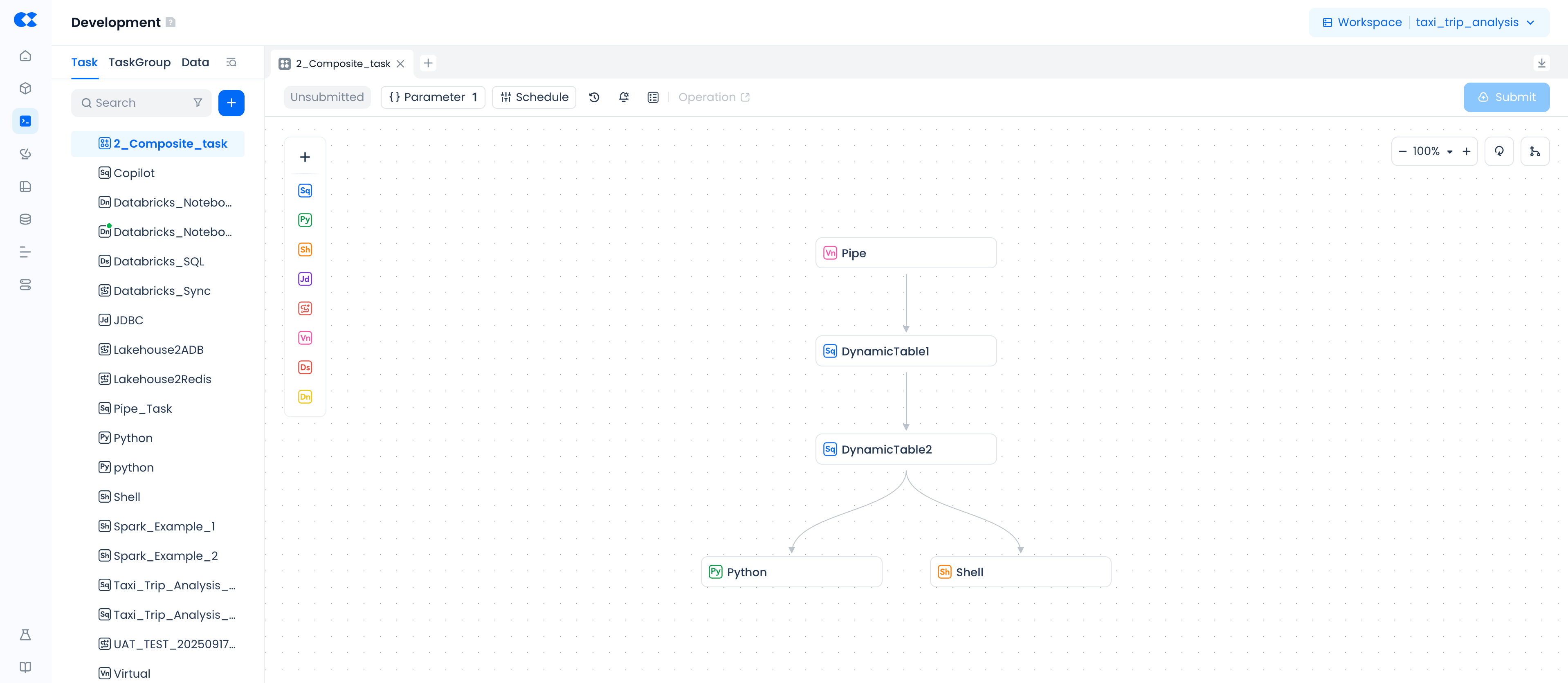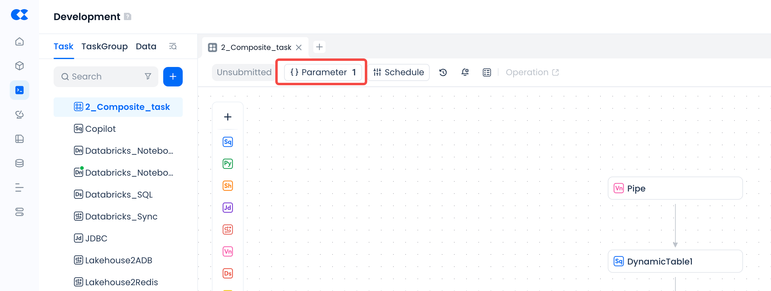 - Composite tasks currently do not support global unified saving of subtask nodes. Please operate on individual subtasks to ensure code, scheduling configuration, and other information are saved before submitting the composite task.