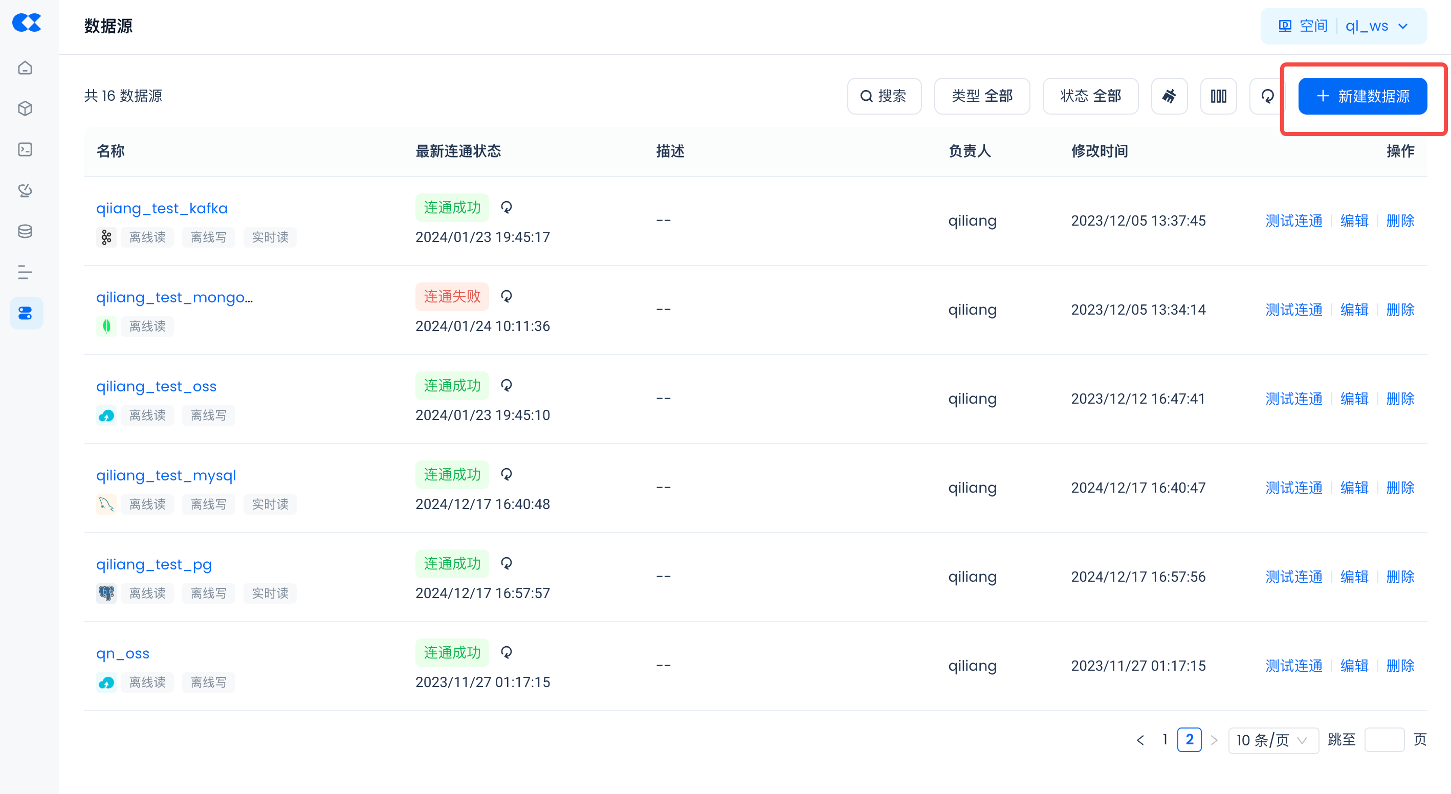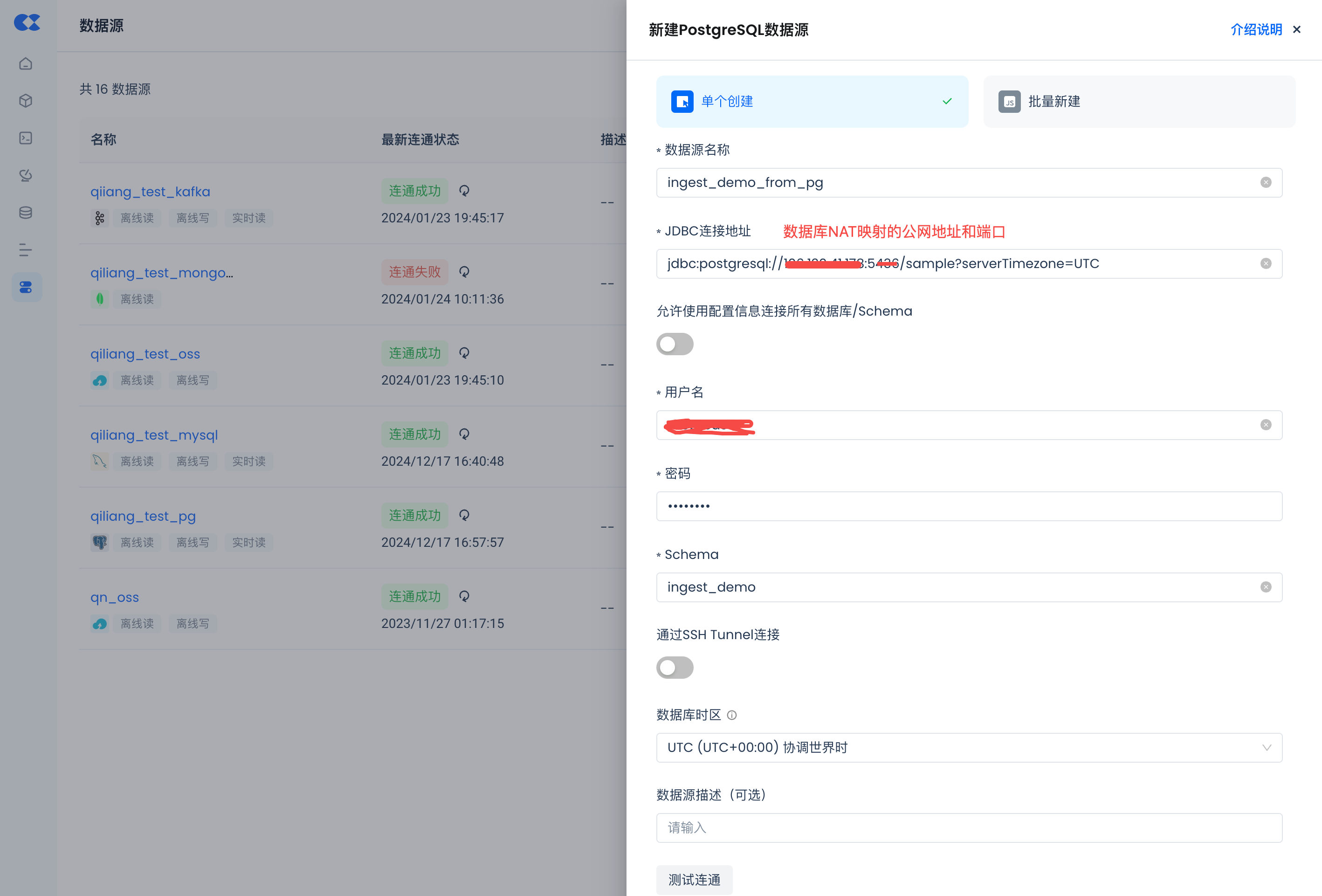 Navigate to Management -> Data Sources, click "New Data Source" and select Postgres to create a Postgres data source, so that Postgres can be accessed by Singdata Lakehouse.