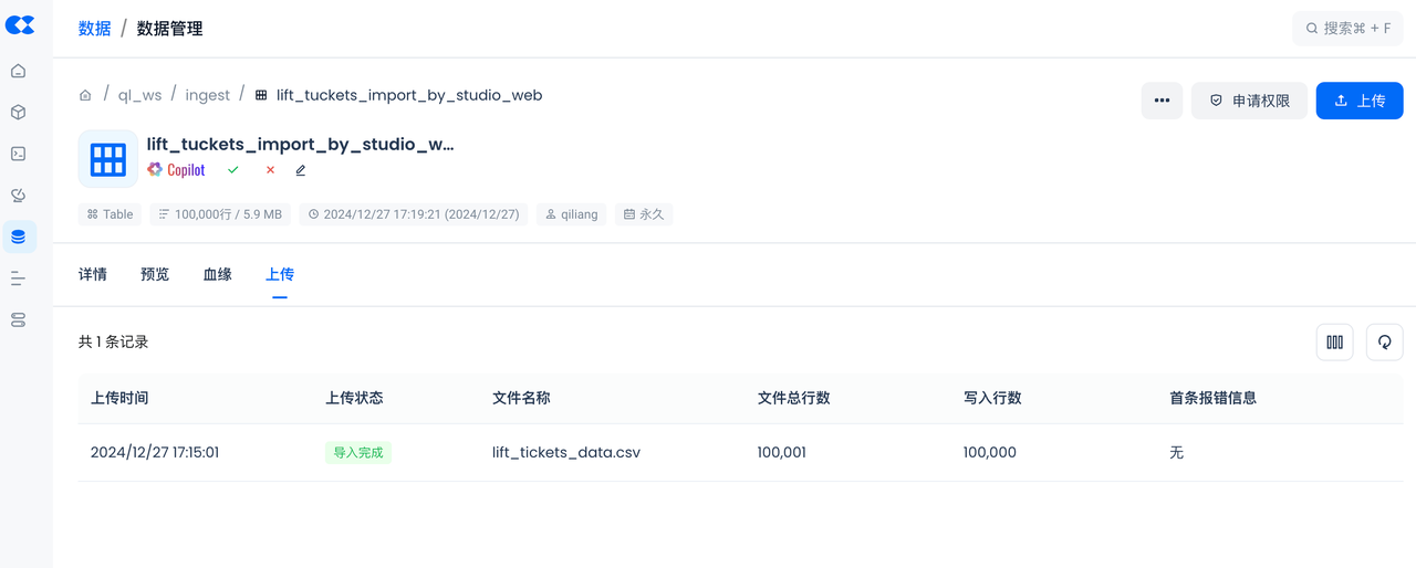 At this point, we have loaded local files into the table via Singdata Lakehouse Studio.