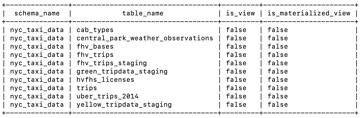 View the tables in the current schema
