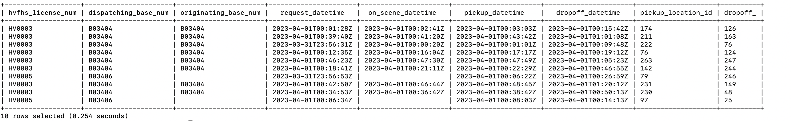 After a successful connection, you can execute Lakehouse SQL commands in the command line client. Here are some examples of SQL commands: