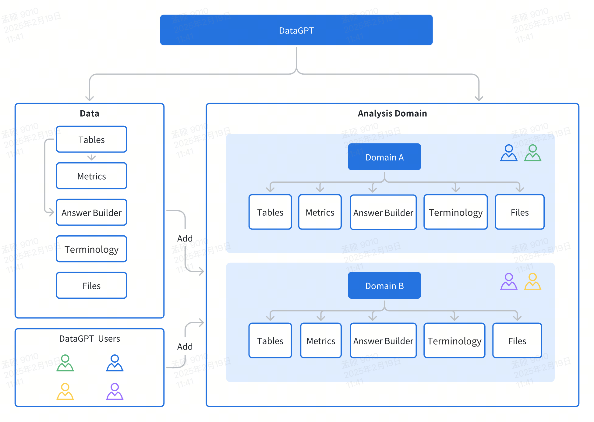 The DataGPT system is designed to meet the needs of two core user groups in data analysis scenarios: data developers and business analysts. These two types of users play unique and complementary roles in the process of data value mining: