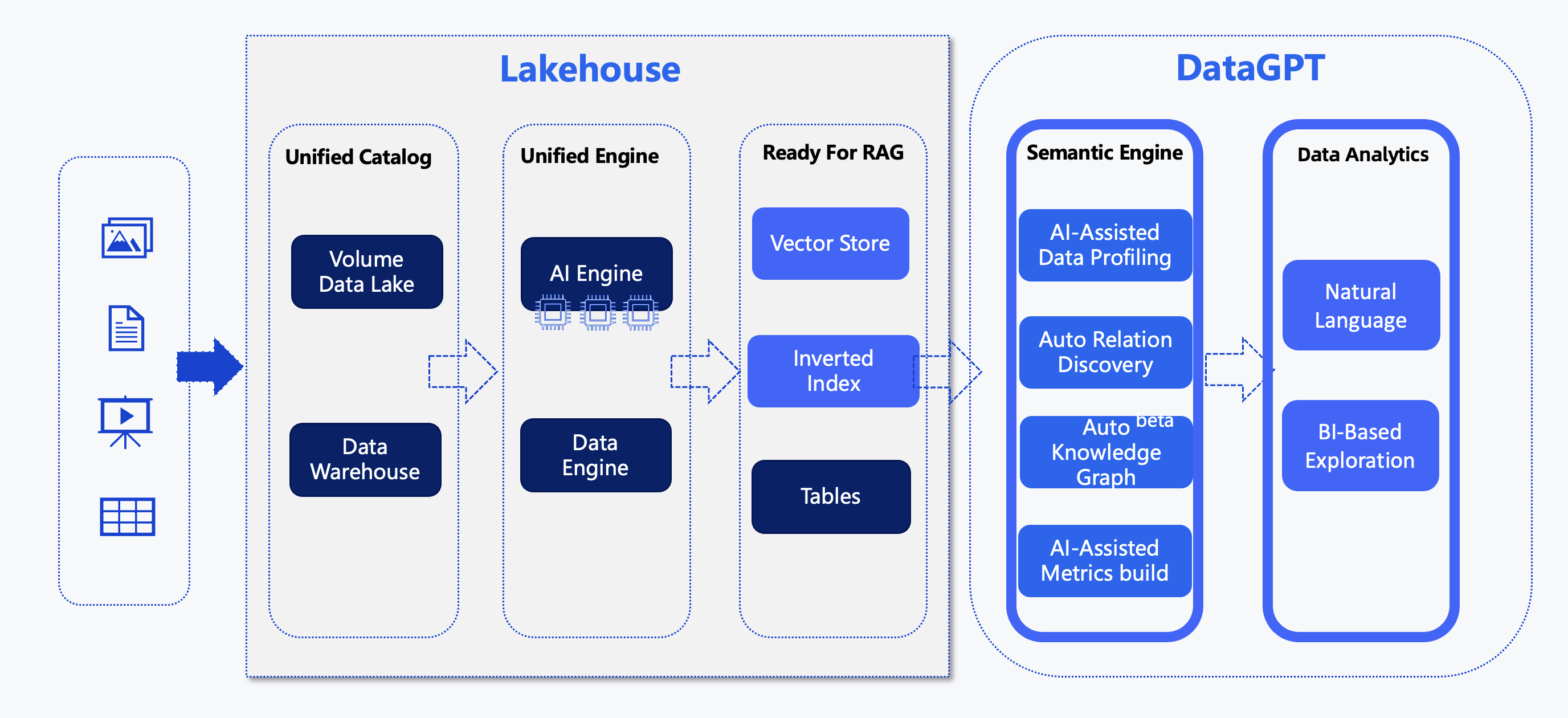 Lakehouse DataGPT is a new generation conversational data analysis tool built on the cloud-native Lakehouse architecture. It combines the natural language understanding capabilities of large language models (LLM) with the processing power of the Lakehouse enterprise-grade data engine, transforming data analysis into an intuitive conversational experience. With DataGPT, even business personnel without a technical background can easily explore data value and drive data-driven intelligent decision-making.