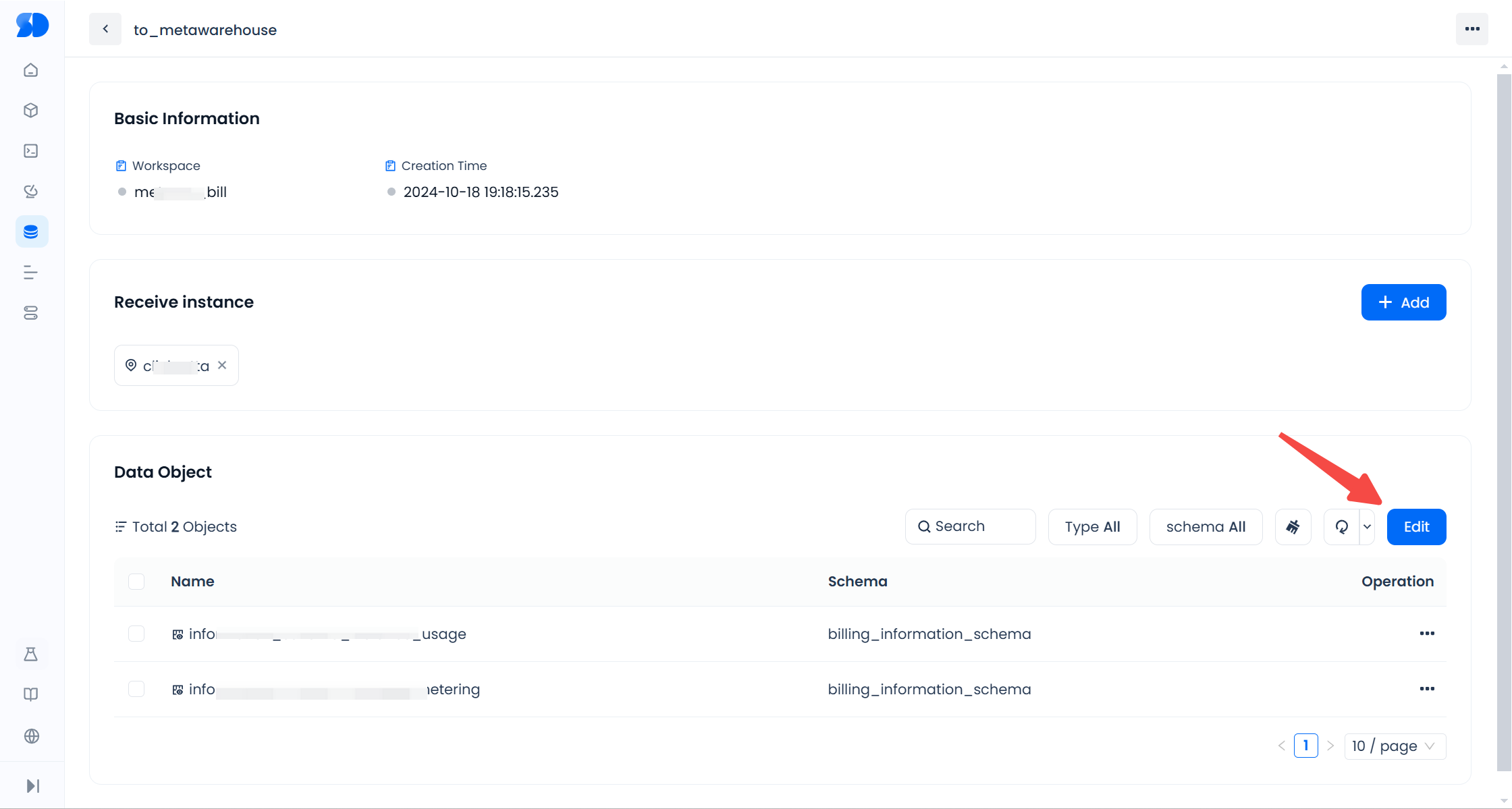 On the data share list page, click the name of the share object to which you want to add data objects to enter the share object details page. Click the "Edit" button, and select the data objects to add or delete in the popup window. Click "OK" to complete the update of the shared data objects. Data from other share objects cannot be added.