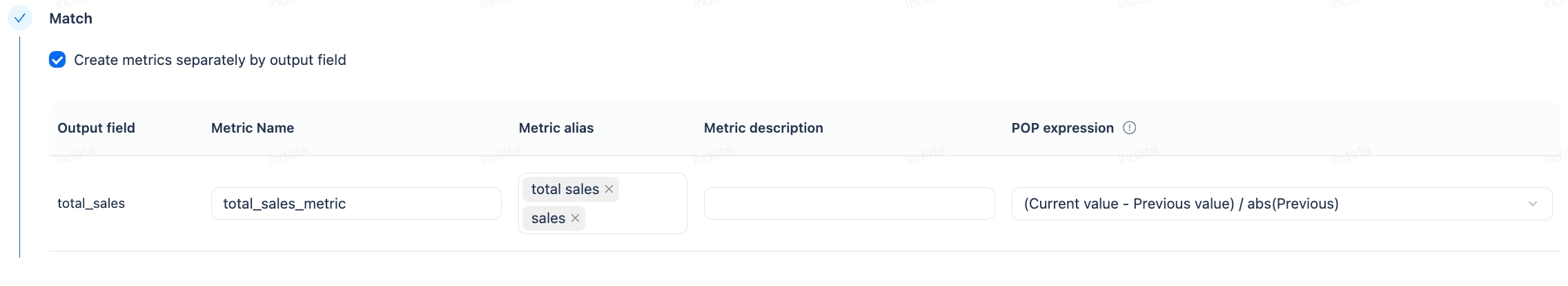 In a metric template, multiple metrics can be defined. Each metric can specify multiple aliases.